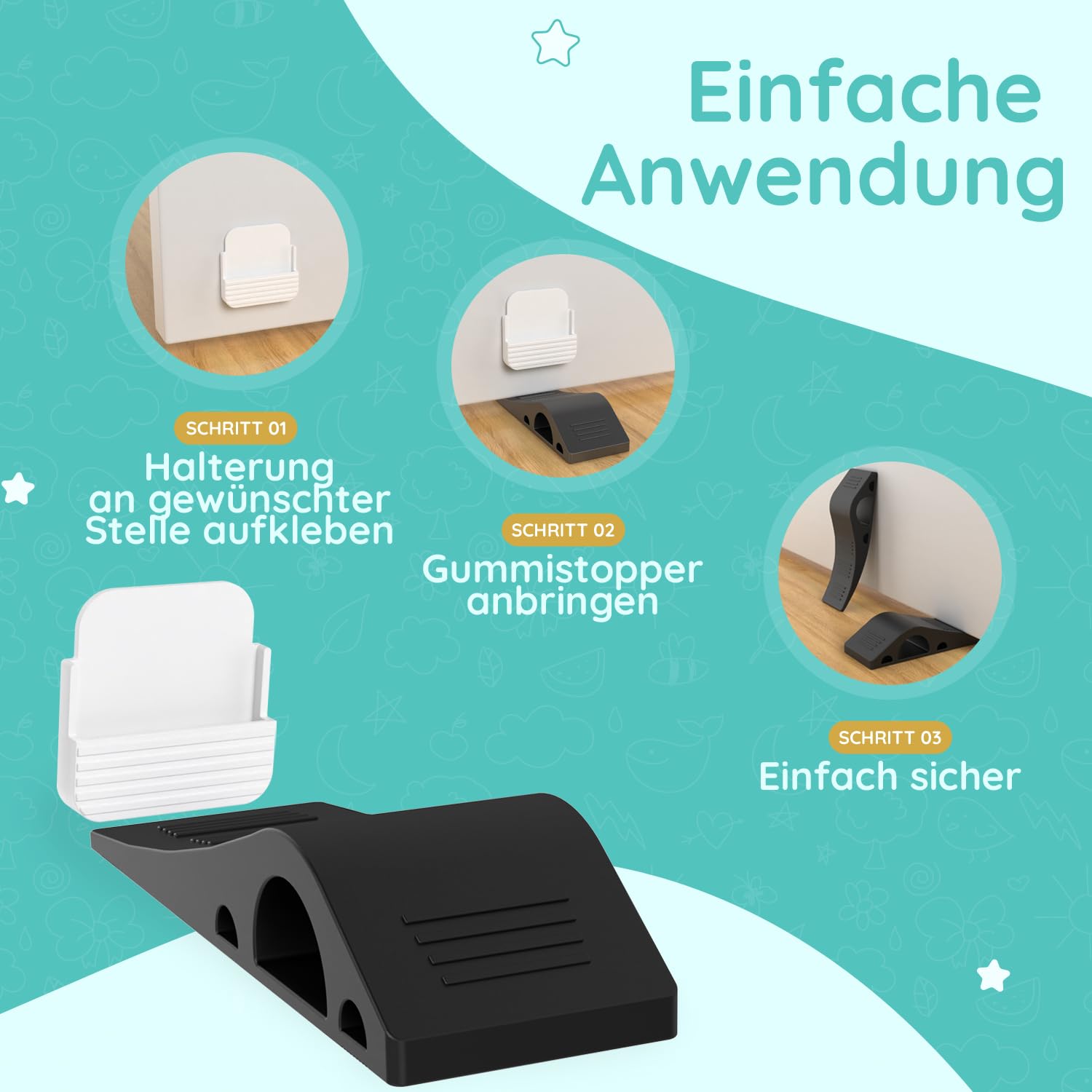 Diese praktischen Türstopper sind die Lösung für viele Alltagsprobleme! Aus flexiblem TPR-Gummi, der sich jeder Oberfläche anpasst. Perfekt um Türen und Fenster sicher offen zu halten - besonders praktisch beim Lüften. Rutschfest auf allen Böden: Teppich, Holz, Fliesen oder Beton. Der Temperaturbereich von -40°C bis +80°C macht sie auch für den Außenbereich geeignet. Im Set sind 2 Stopper und eine wasserdichte PU-Tasche für die Aufbewahrung enthalten. Ohne Bohren - einfach unter die Tür oder das Fenster schieben! Besonders wichtig: Schützt Kinder und Haustiere vor eingeklemmten Fingern. Wenn mal wieder eine Windböe durchs Haus fegt, bleiben Türen und Fenster sicher stehen. Einfach, aber genial - diese Türstopper sollten in jedem Haushalt vorhanden sein! Einfach platzieren und sich über mehr Sicherheit und Komfort freuen.
