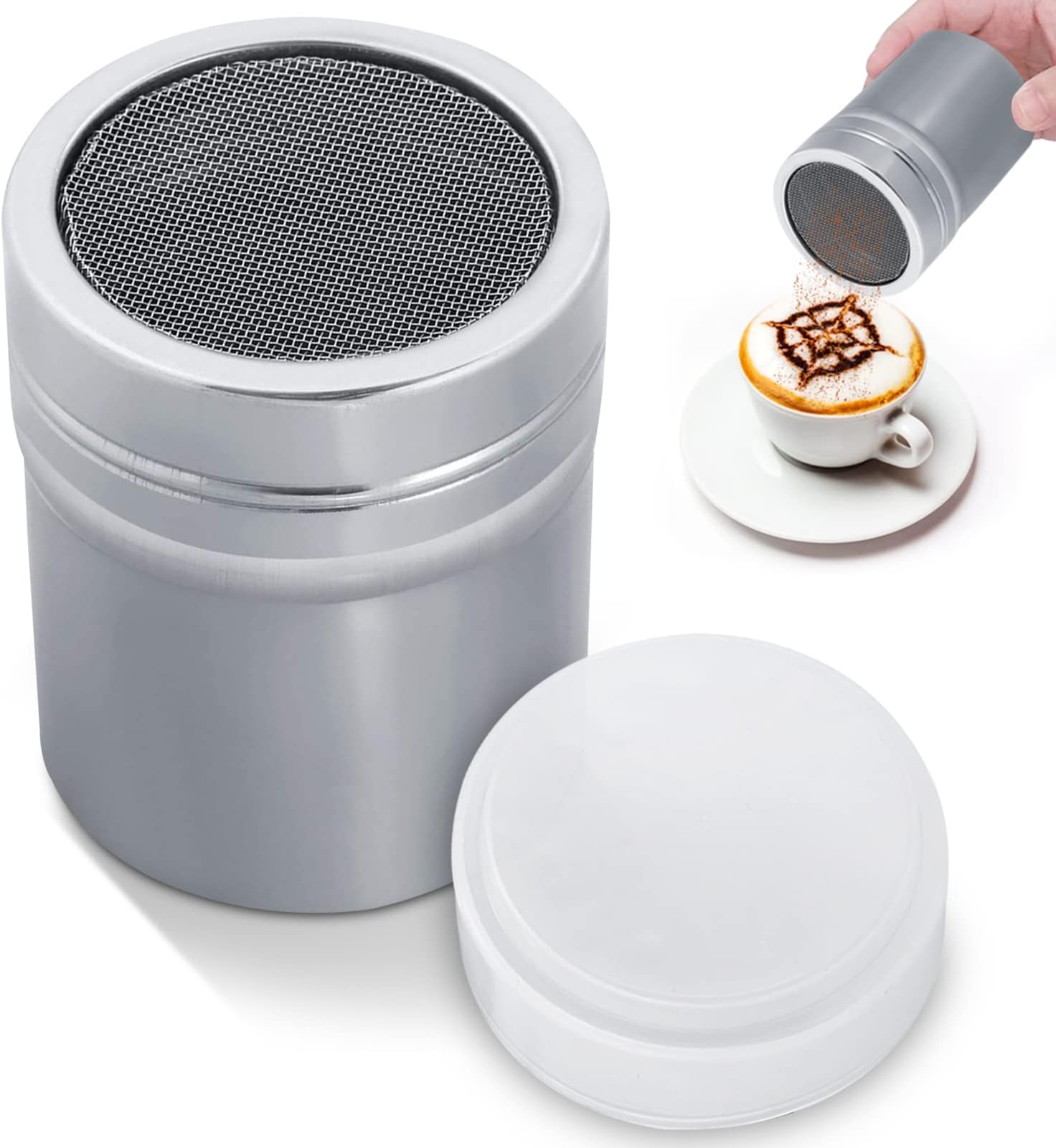 Perfektes Streuen garantiert! Dieser Edelstahl-Streuer verteilt Puderzucker, Kakao und Mehl gleichmäßig wie ein Profi. Mit feinmaschigem Sieb für staubfeine Verteilung. Der durchsichtige Deckel hält dein Pulver frisch und trocken. In drei Größen erhältlich (S: 5,5x8,2cm, M: 6,8x9cm, L: 6,8x12,7cm). Aus rostfreiem Edelstahl 201 - einfach mit Wasser reinigen. Ideal fürs Backen, Kaffeekunst oder zum Würzen. Macht aus jedem Kuchen ein Kunstwerk! Ein Küchenhelfer, den du nicht mehr missen willst.