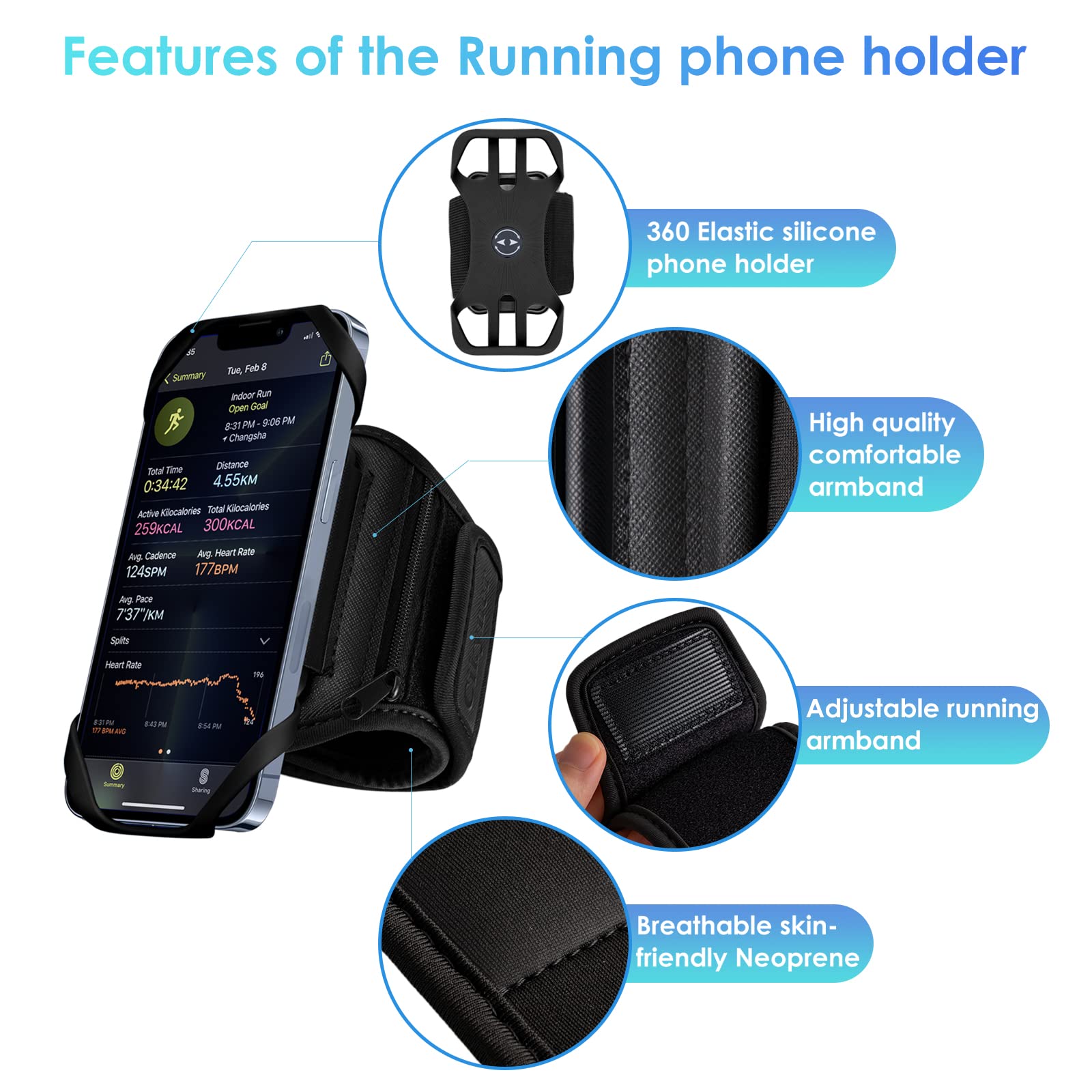 Hands free beim Sport! Dieses Sportarmband hält dein Smartphone sicher am Oberarm - egal ob beim Joggen, Wandern oder im Fitnessstudio. Das besondere Feature: Der Halter ist 360° drehbar, sodass du dein Handy immer perfekt positionieren kannst. Mit dem praktischen Clip-System hast du trotzdem vollen Zugriff auf Bildschirm und Tasten. Perfekt für alle Smartphones von 4,5 bis 7 Zoll - also praktisch für jedes moderne Handy. Das atmungsaktive Material sorgt dafür, dass keine Feuchtigkeit staut und dein Arm immer trocken bleibt. Verstellbar und bequem zu tragen, sowohl für Männer als auch Frauen. Kein Wackeln, kein Verrutschen - dein Handy bleibt sicher an seinem Platz, egal wie intensiv dein Training wird. Super praktisch für alle, die unterwegs Musik hören, Navigation nutzen oder ihre Trainingsdaten tracken wollen. Das Set enthält zusätzlich eine Handschlaufe für noch mehr Flexibilität. Ob Laufen, Radfahren, Camping oder Angeln - mit diesem Armband hast du dein Handy immer griffbereit, ohne es in der Hand halten zu müssen. Endlich beide Hände frei für dein Workout!