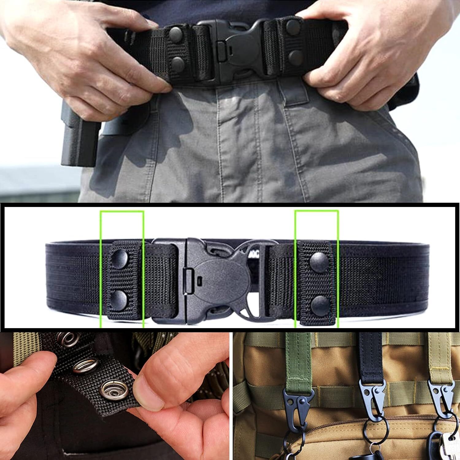 Ordnung am Gürtel war noch nie so einfach! Dieses 5er-Set Gürtelschlaufen von Lunaanda sorgt für perfekte Organisation deiner Ausrüstung. Aus strapazierfähigem Nylon gefertigt, sind diese Halter wasserdicht, verschleißfest und extrem langlebig. Das doppelte Druckknopf-Design mit Klettverschluss garantiert einen sicheren Halt - selbst bei großen Bewegungen wie Laufen oder Kämpfen lösen sie sich nicht. Einfach um den Gürtel wickeln und mit dem Metallknopf schließen - schon ist alles fest an Ort und Stelle. Im Set enthalten sind 5 Gürtelschlaufen (19x2,5cm) und 5 Karabiner-Verschlüsse (2,6x6,2cm). Perfekt für Polizisten, Sicherheitspersonal, Feuerwehrleute, aber auch für Outdoor-Aktivitäten wie Wandern, Angeln oder Camping. Ideal zum sicheren Tragen von Schlüsseln, Taschenlampen, Radios oder anderer wichtiger Ausrüstung. Leicht und kompakt, verursachen keine Beschwerden an der Taille. Ein unverzichtbares Accessoire für alle, die ihre Ausrüstung organisiert und griffbereit haben wollen. Hol dir dieses Set und meistere jeden Einsatz perfekt ausgerüstet!