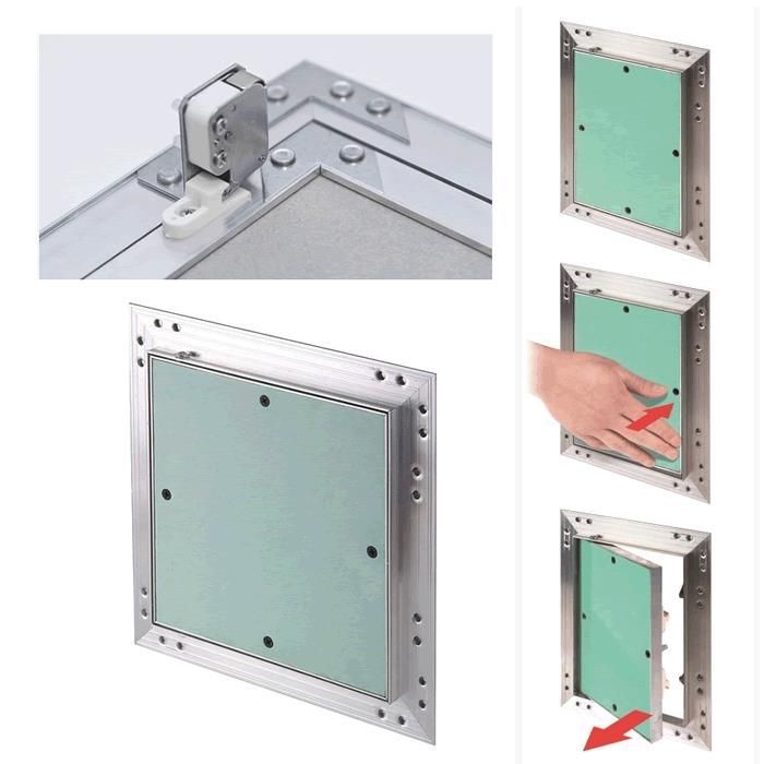 Perfekt versteckt und trotzdem immer griffbereit! Diese Gipskarton-Zugangsplatte mit Aluminiumrahmen ist die ideale Lösung, um an versteckte Installationen zu kommen, ohne die ganze Wand aufreißen zu müssen.\n\nEgal ob du an Gas-, Wasser- oder Stromzähler musst, oder an Feuerlöschdüsel in der Decke - mit dieser Klappe geht das ratzfatz. Einfach die längere Kante drücken und schon springt sie auf. Das Push-Release-Design ist genial einfach!\n\nMontieren ist kein Hexenwerk: Die Federverschlüsse halten bombenfest, aber du brauchst keine extra Griffe oder Scharniere. Sie verschwindet praktisch unsichtbar in deiner Wand oder Decke.\n\nAus hochwertigem Gipskarton und stabilem Aluminium gebaut - das hält ewig! Und feuchtigkeitsabweisend ist sie auch noch.\n\nDu hast die Wahl zwischen 6 praktischen Größen:\n- 200x200mm\n- 250x250mm \n- 300x300mm\n- 350x350mm\n- 400x400mm\n- 450x450mm\n\nSuper für Deckenlager, Zentralheizungsverteiler oder überall dort, wo du ab und zu mal reinschauen musst. Einfach das Maß nehmen, Ausschnitt sägen und rein damit - schon hast du deine persönliche Serviceklappe!