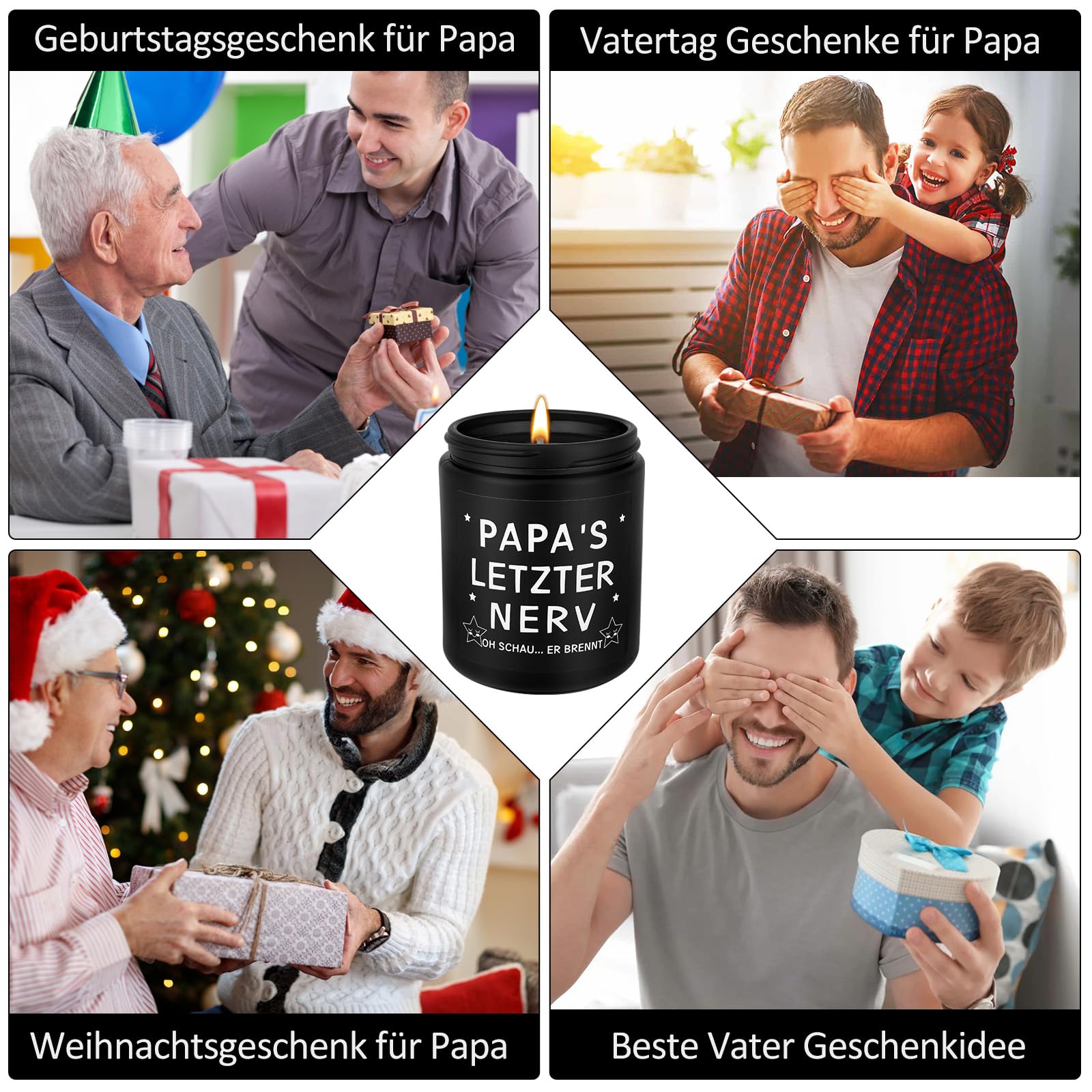 Du suchst ein besonderes Geschenk für deinen Papa oder Stiefvater? Diese Duftkerze von Johiux sagt genau das, was du fühlst: 'Danke, Papa, du hast mein Leben besser gemacht.' Aus natürlichem Sojawachs, mit Sandelholz-Duft und bis zu 50 Stunden Brenndauer. Sie kommt im Glas, das du später als Stiftehalter oder Topf weiter nutzen kannst. Einfach anzuzünden, super als Geschenk zu Weihnachten, Vatertag oder Geburtstag – eine echte Herzenssache!