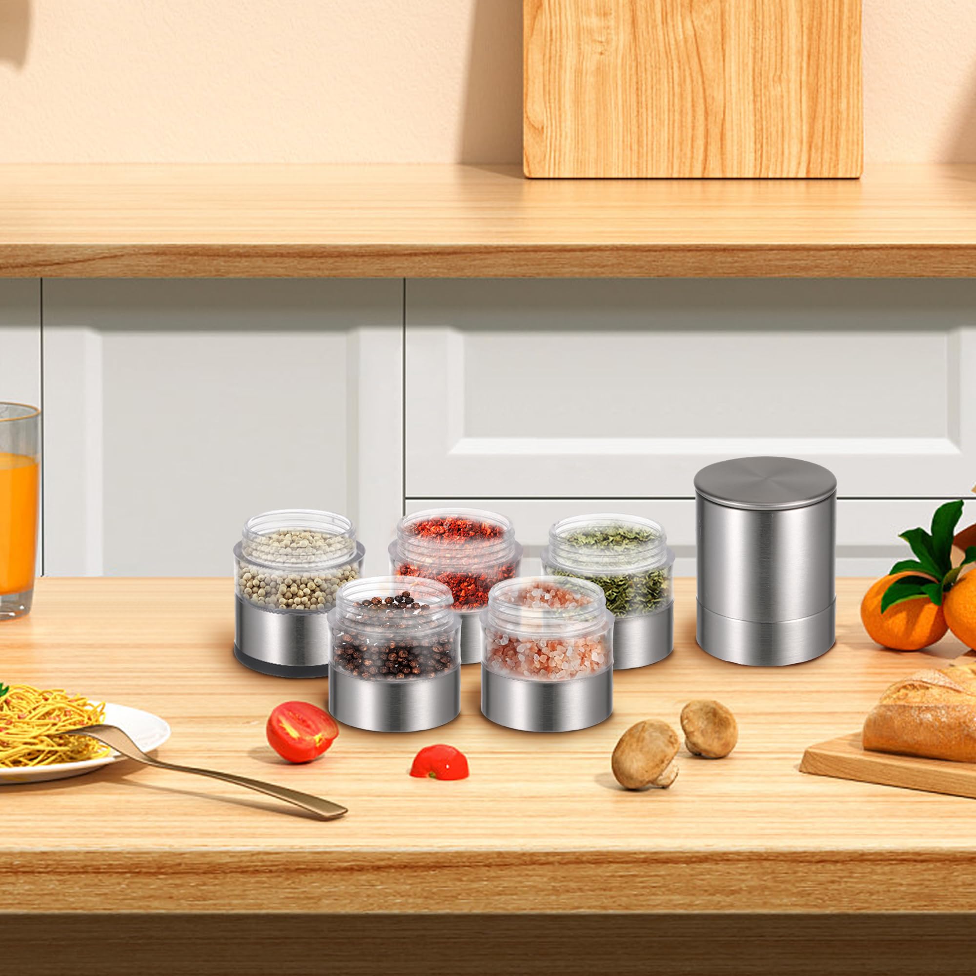 Endlich Gewürze immer dabei! Dieses geniale 5-in-1 Set aus Aluminium ist dein perfekter Begleiter für unterwegs. Mit den Maßen 139x25 mm passt es in jede Tasche oder kann am Schlüsselring befestigt werden. Fünf separate Fächer ermöglichen dir, verschiedene Gewürze mitzunehmen - ob Salz, Pfeffer, Paprika oder deine Lieblingsgewürzmischungen. Das wasserdichte Design schützt vor Feuchtigkeit und die Aluminiumlegierung ist robust, langlebig und lebensmittelecht. Perfekt für Camping, Picknick, Grillabende, Reisen oder einfach für die Organisation in der Küche. Die Reinigung ist super einfach - mit Wasser und Seife, aber bitte gründlich trocknen lassen vor dem nächsten Befüllen! Jedes Set wird mit einem praktischen Netzbeutel geliefert. Für alle Foodies, die auch unterwegs nicht auf den perfekten Geschmack verzichten wollen. Mach jedes Outdoor-Essen zum kulinarischen Erlebnis - ob im Van, auf dem Boot oder beim Wandern!