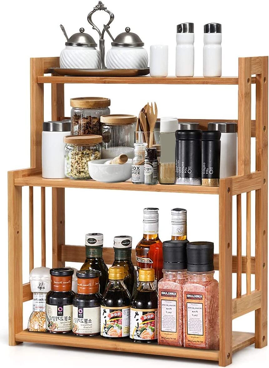 Endlich Ordnung in der Küche! Dieses Bambus-Gewürzregal von Relaxdays ist der Hit. Mit 3 Etagen und 50x41,5x18cm Maßen findet alles Platz: Gewürze, Ölflaschen, Teedosen - was das Küchenherz begehrt. Die Ablagen sind in 6 Höhen verstellbar, also super flexibel. Aus natürlichem Bambus, feuchtigkeitsabsorbierend und pflegeleicht. Traglast bis 4 kg pro großer Ablage. Perfekt für die Arbeitsplatte oder im Schrank. Sieht nicht nur gut aus, sondern ist auch mega praktisch! Auch als Schreibtisch-Organizer oder für Kosmetik im Bad nutzbar. Einfach zusammenbauen und sofort mehr Ordnung genießen!