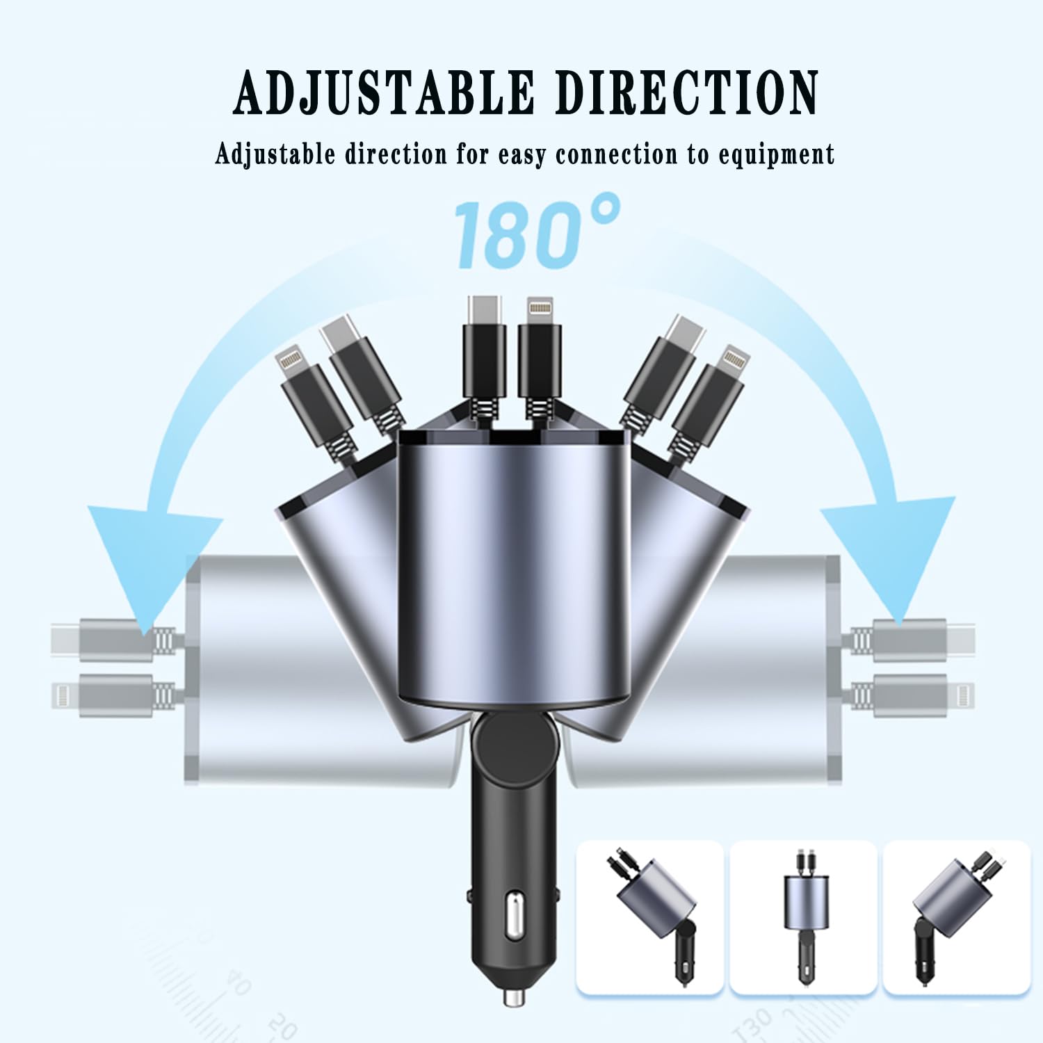 Schluss mit kabelsalat im Auto! Dieses geniale Ladegerät hat ein verstecktes Kabel, das sich automatisch einzieht - einfach ziehen, laden und loslassen! Mit 100W Leistung lädst du sogar zwei Geräte gleichzeitig superschnell. Kompatibel mit allen iPhones, Android Smartphones und Tablets. Die Aluminium-Legierung verhindert Überhitzung - sicherer als Plastik-Ladegeräte. Passt in 99% aller Zigarettenanzünder und blockiert nicht die Handbremse. Das 80cm lange Kabel reicht auch für die Rücksitze. Mit Metall-Kontakten für stabilen Sitz und unterbrechungsfreie Stromversorgung. Ob Pendeln, Roadtrip oder Familienausflug - deine Geräte sind immer voll geladen. Endlich Ordnung im Auto - so macht laden Spaß!