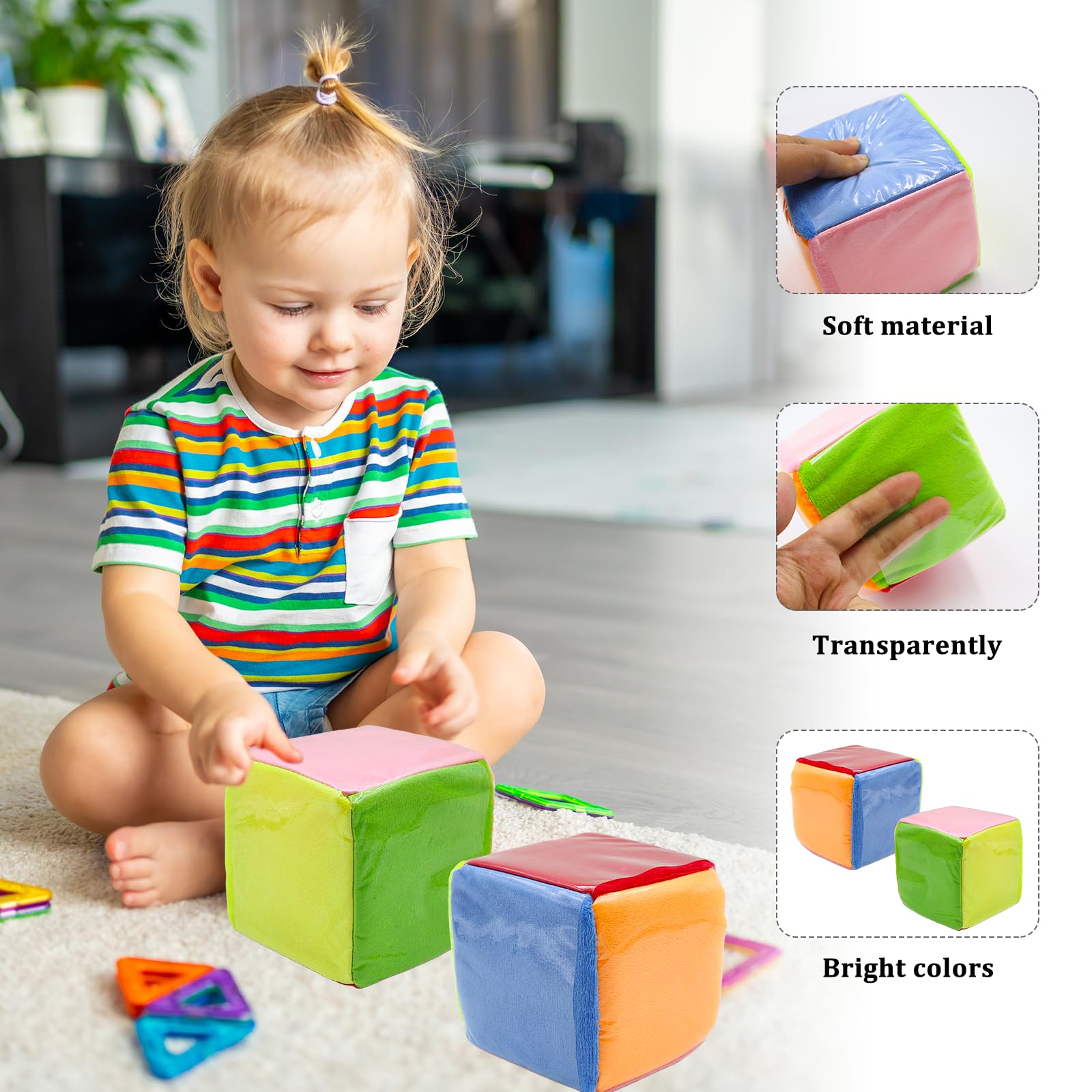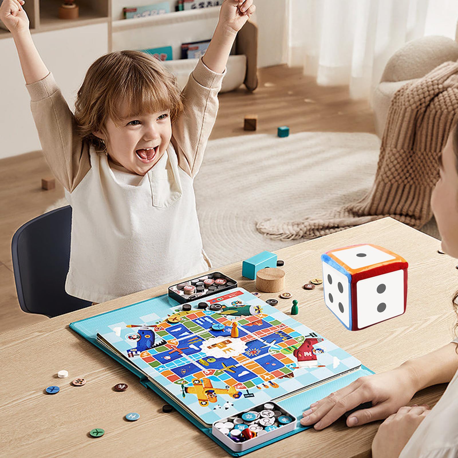Spielerisch lernen war noch nie so spaßig! Diese beiden weichen Plüschwürfel aus Schaumstoff sind perfekt für Kindergarten- und Vorschulkinder. Jeder Würfel hat 6 durchsichtige Taschen, in die Karten, Bilder oder kleine Objekte gesteckt werden können. So wird jedes Spiel zur Lernopportunität! Die Würfel sind superleicht, weich und haben keine scharfen Kanten - absolut sicher für kleine Kinderhände. Maße: 10x10cm, Material: Plüsch + Kunststofffolie, Inhalt: 2 Würfel. Ideal für Buchstabenspiele, Zahlen lernen, Geschichten erzählen oder einfach nur zum Werfen und Fangen. Besonders praktisch: Sie machen kaum Geräusche beim Fallen und sind leicht zu reinigen. Perfekt für zu Hause, Kindergarten oder unterwegs. Förderung von Kreativität, motorischen Fähigkeiten und kognitiver Entwicklung - und das alles mit jeder Menge Spaß! Einfach die mitgelieferten Karten verwenden oder eigene erstellen.