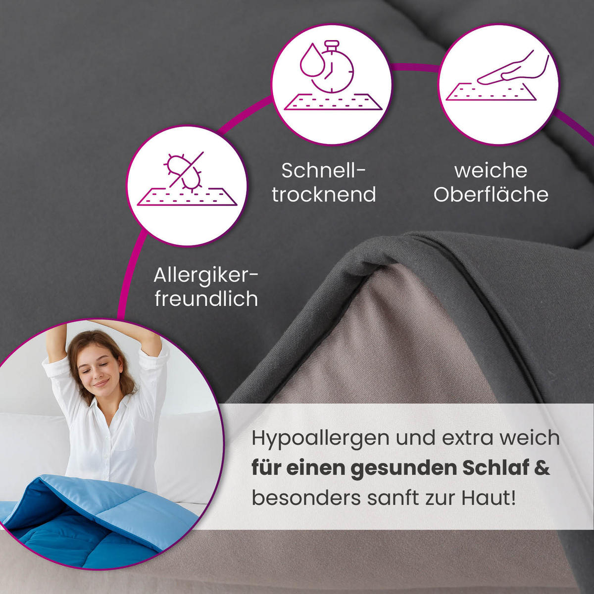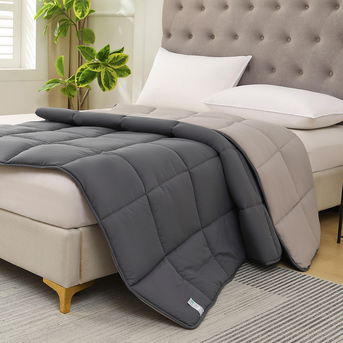 Suchst du eine kuschelige Decke für das ganze Jahr? Das wometo Plüsch Steppbett ist perfekt! Mit 155x220cm Größe bietet es viel Platz zum Einkuscheln. Das clevere Wende-Design: eine Seite flauschiger Flanell für kalte Tage, die andere glatte Mikrofaser für wärmere Nächte. Ohne Bezug sofort nutzbar - super praktisch! Hergestellt aus 100% Polyester, gefüllt mit wärmender Hohlfaser. Geprüft nach OEKO-TEX STANDARD 100 - absolut hautfreundlich und unbedenklich, auch für Kinder. Einfach bei 60°C waschbar und trocknergeeignet. Die grau/hellgraue Farbkombination ist zeitlos und passt in jedes Schlafzimmer. Perfekt als Schlafdecke, Überwurf oder gemütliche Couchdecke. Hochwertige Verarbeitung mit Paspel-Einfassung. Mach es dir gemütlich!