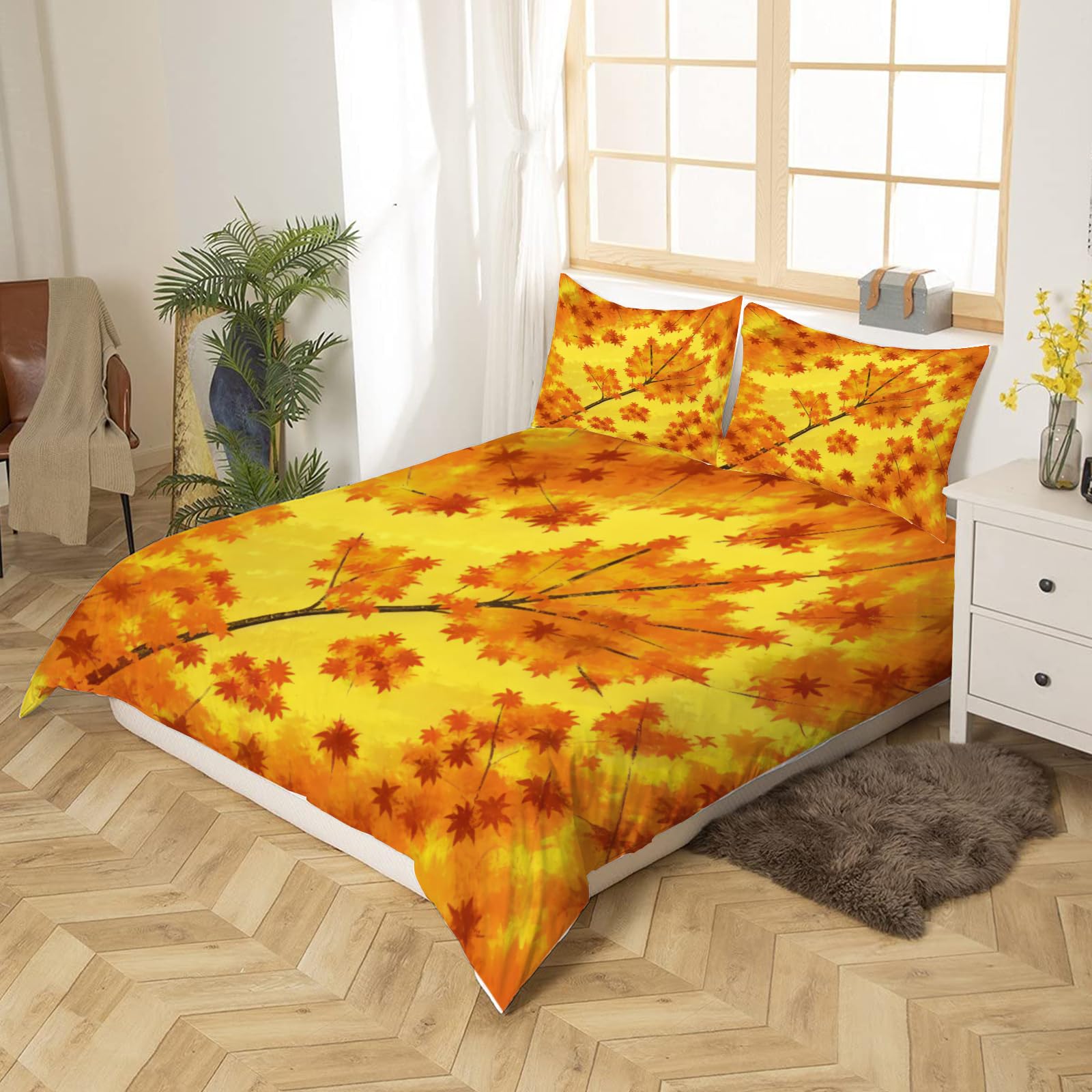 Herbst-Feeling im Schlafzimmer! Diese wunderschöne Bettwäsche mit Ahornblatt-Motiv bringt die gemütliche Jahreszeit direkt zu dir nach Hause. Aus weicher, atmungsaktiver Mikrofaser gefertigt, die sich angenehm auf der Haut anfühlt und für einen erholsamen Schlaf sorgt. Das Set besteht aus einem Bettbezug 155x220 cm und zwei Kissenbezügen 80x80 cm (ohne Füllung). Durch die moderne 3D-Drucktechnologie sind die Herbstblätter-Motive besonders farbintensiv und lebendig. Praktische Features: verdeckter Reißverschluss am Bettbezug und vier Eckbänder, die deine Decke sicher an Ort und Stelle halten. So verrutscht nichts und du hast jede Nacht deine wohlverdiente Ruhe! Die Mikrofaser ist bügelfrei, pflegeleicht und bei 30°C waschbar - also super praktisch im Alltag. Ob für dein Schlafzimmer, Gästezimmer oder Kinderzimmer - diese Bettwäsche macht überall eine gute Figur! Ein perfektes Geschenk für Herbst-Liebhaber oder einfach für dich selbst, um dein Zuhause gemütlicher zu machen. Wacht auf mit dem Gefühl, in einem herbstlichen Wald zu sein - jeden Tag aufs Neue!