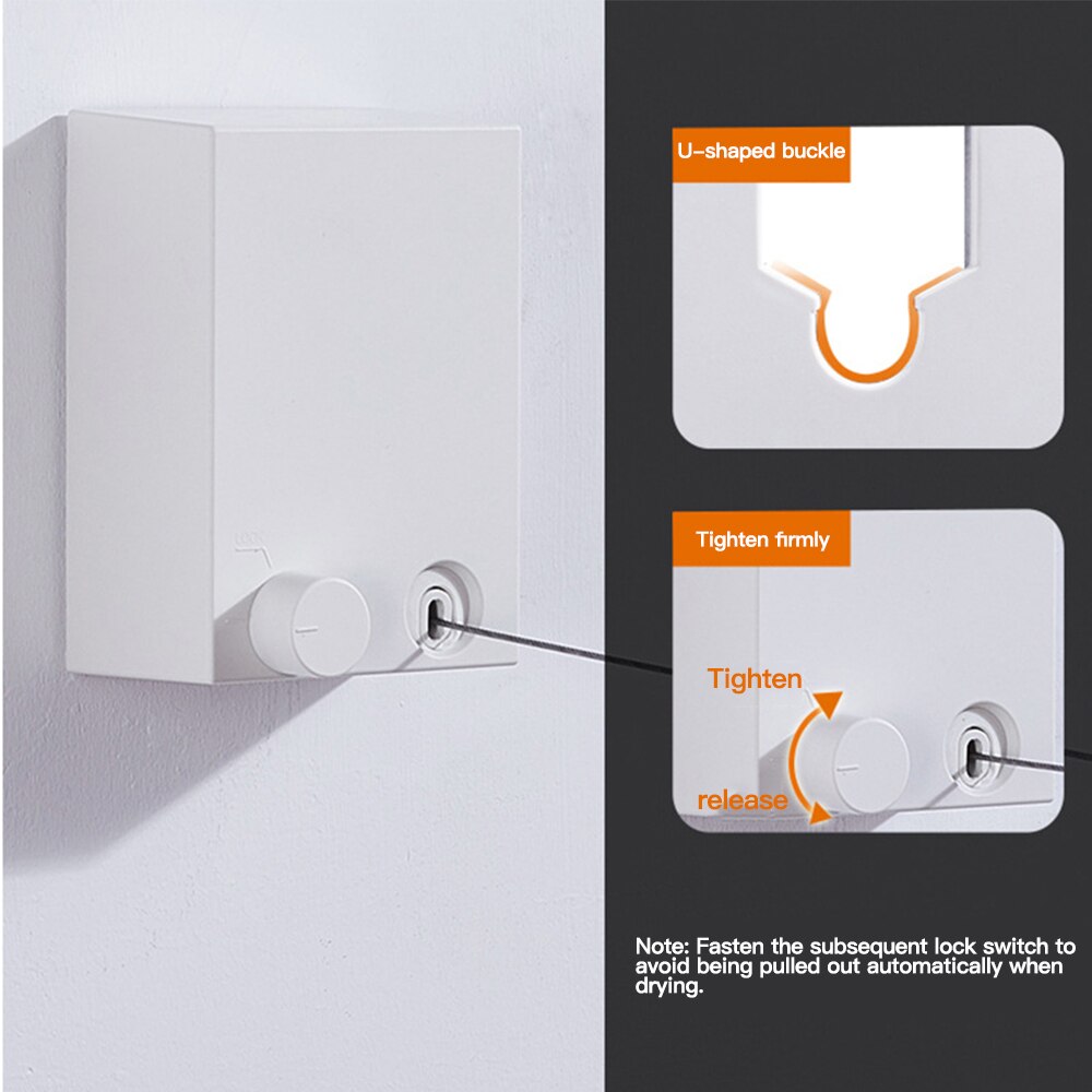 • Versenkbare Wäscheleine 4m Silber - Wandmontage Kleidertrockner Für Bad & Balkon