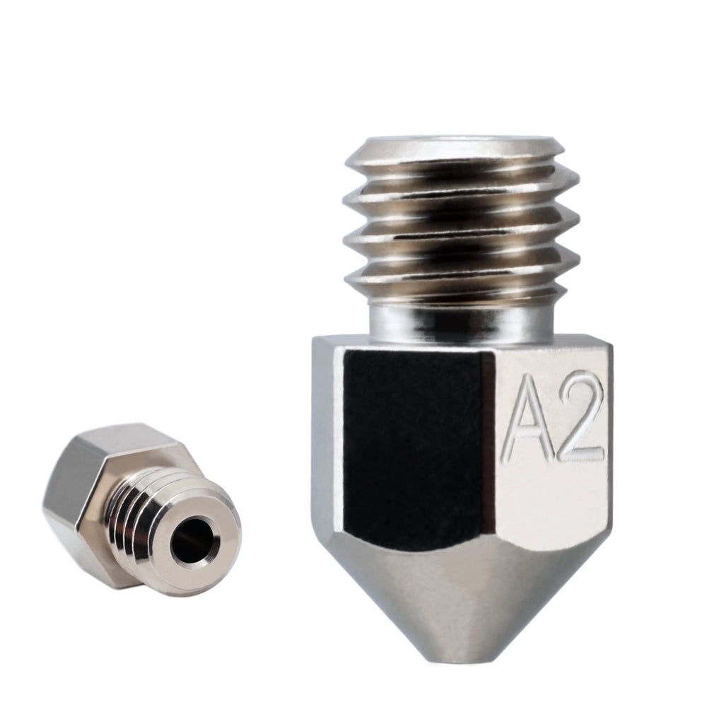 Die Spitze ist aus M2 gehärtetem Stahl mit spezieller Nano-Beschichtung - absolut anti-haftend! Dein Filament klebt nicht fest und die Düse verstopft nicht so schnell.