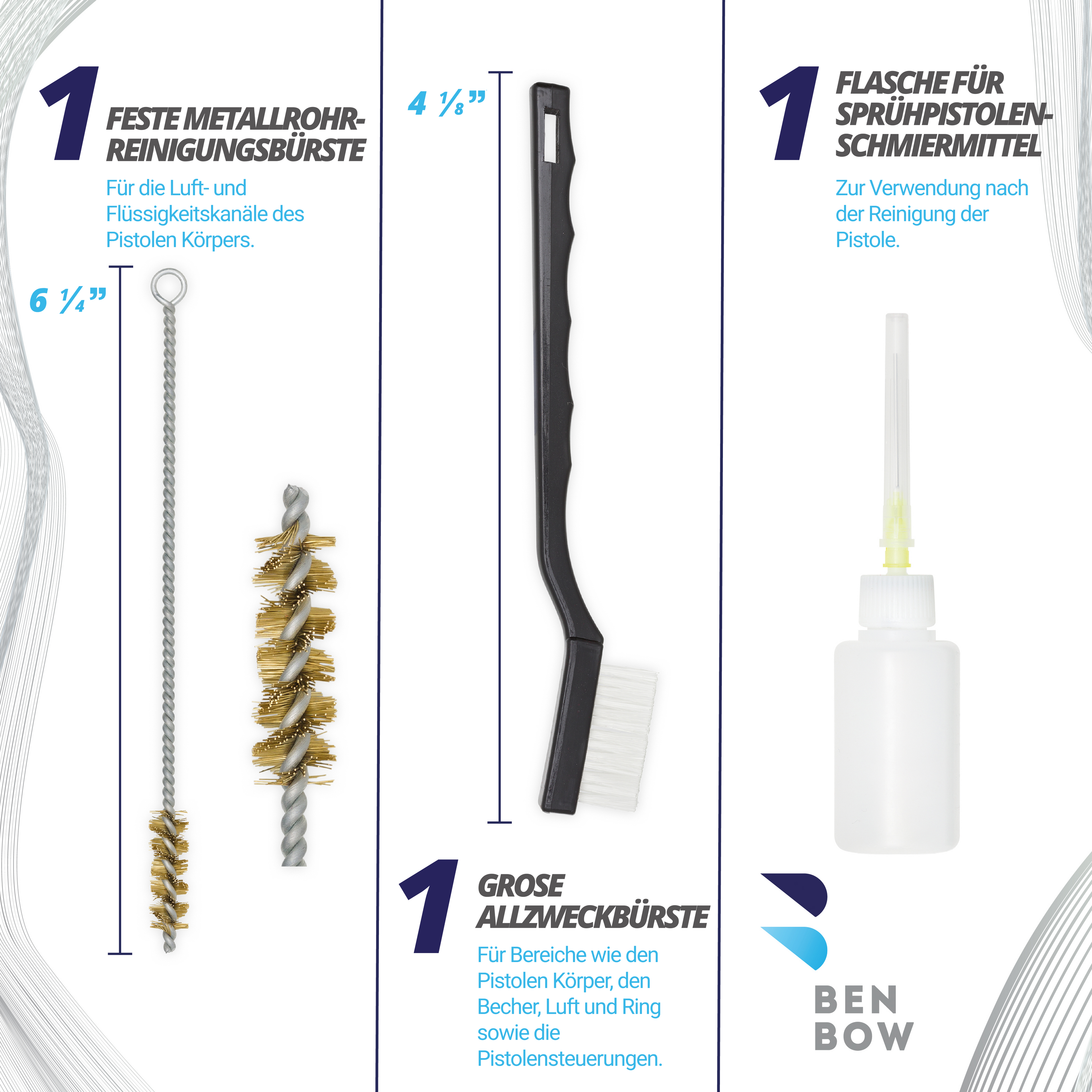 Perfekte Lackierergebnisse mit diesem Profi-Reparaturset! Enthält Luftkappe, Nadel und Düse 2,0mm für deine BenBow PK80 Lackierpistole. Aus rostfreiem Edelstahl - ideal auch für moderne Wasserlacke. Spritzbild bis 300mm Breite bei nur 270lpm Luftverbrauch. Viele Lackierer schwören drauf: Sauberes Spritzbild, tolle Ergebnisse sogar in der Hobby-Werkstatt! Einfach austauschen und sich über professionelle Lackierergebnisse freuen. Ob Auto-Lack, Klarlack oder Decklack - damit klappt's garantiert! Ein Muss für jeden, der Wert auf perfekte Lackierarbeiten legt.