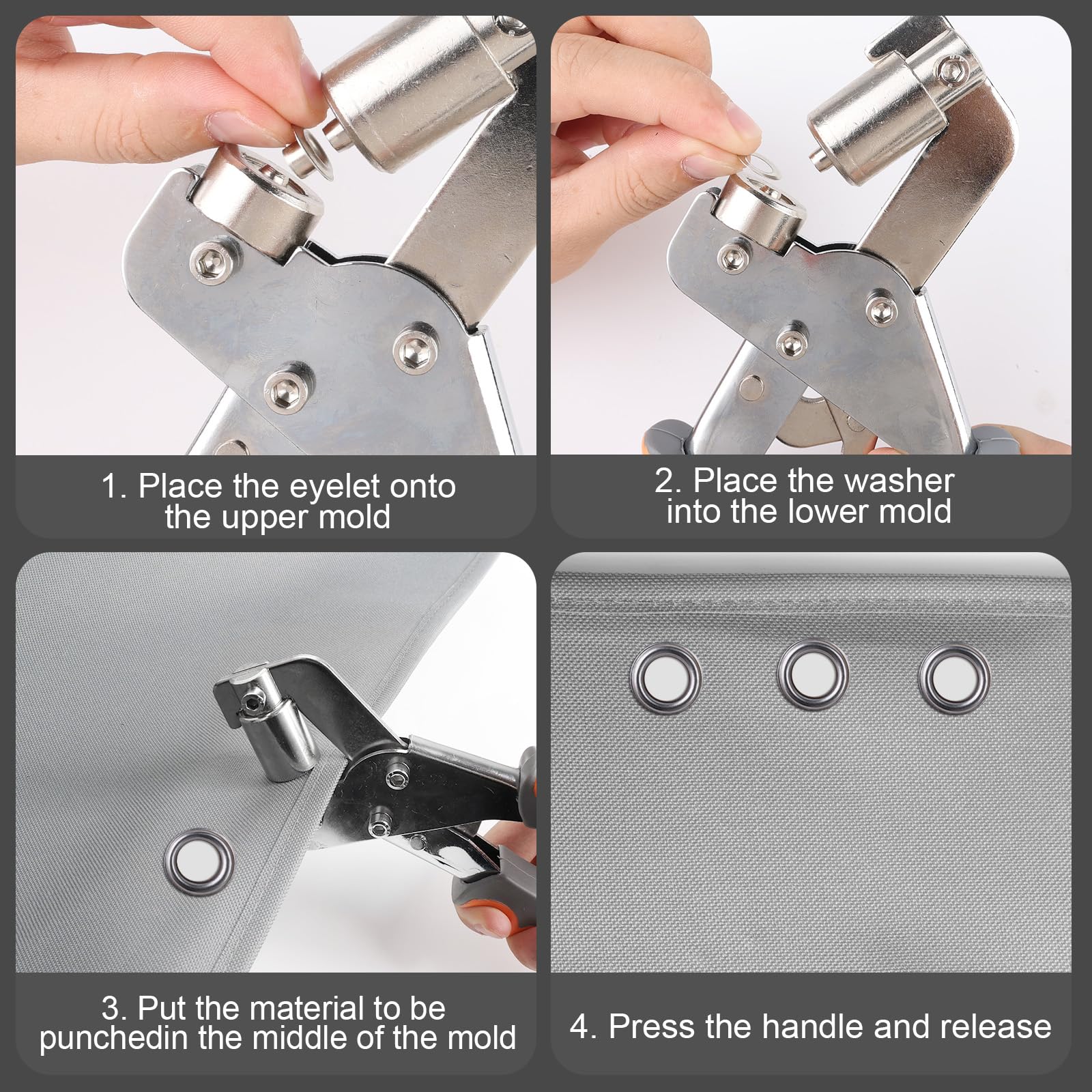 Dieses professionelle Ösenzange-Set von OUPADOS ist perfekt für alle Bastelprojekte! Enthalten sind 480 Ösen in 6mm Größe und vier verschiedenen Farben: Gold, Silber, Bronze und Gunmetal. Die magnetische Ösenpresse aus gehärtetem Stahl ist super robust und bietet maximale Haltbarkeit. Der ergonomische Griff mit Gummibeschichtung liegt gut in der Hand und reduziert die Ermüdung - selbst bei intensiver Nutzung. Perfekt für Lederarbeiten, Gürtel, Markisen, Planen, Stoffe und vieles mehr. Die Präzisionsausrichtung sorgt für gleichmäßige, sichere Verbindungen bei jedem Einsatz. Ob für Mode-Accessoires, Heimdekoration oder Reparaturen - mit diesem Komplett-Set bist du bestens ausgestattet! Einfach zu verwenden und liefert professionelle Ergebnisse. Dein ultimatives Tool für alle Ösen-Projekte!