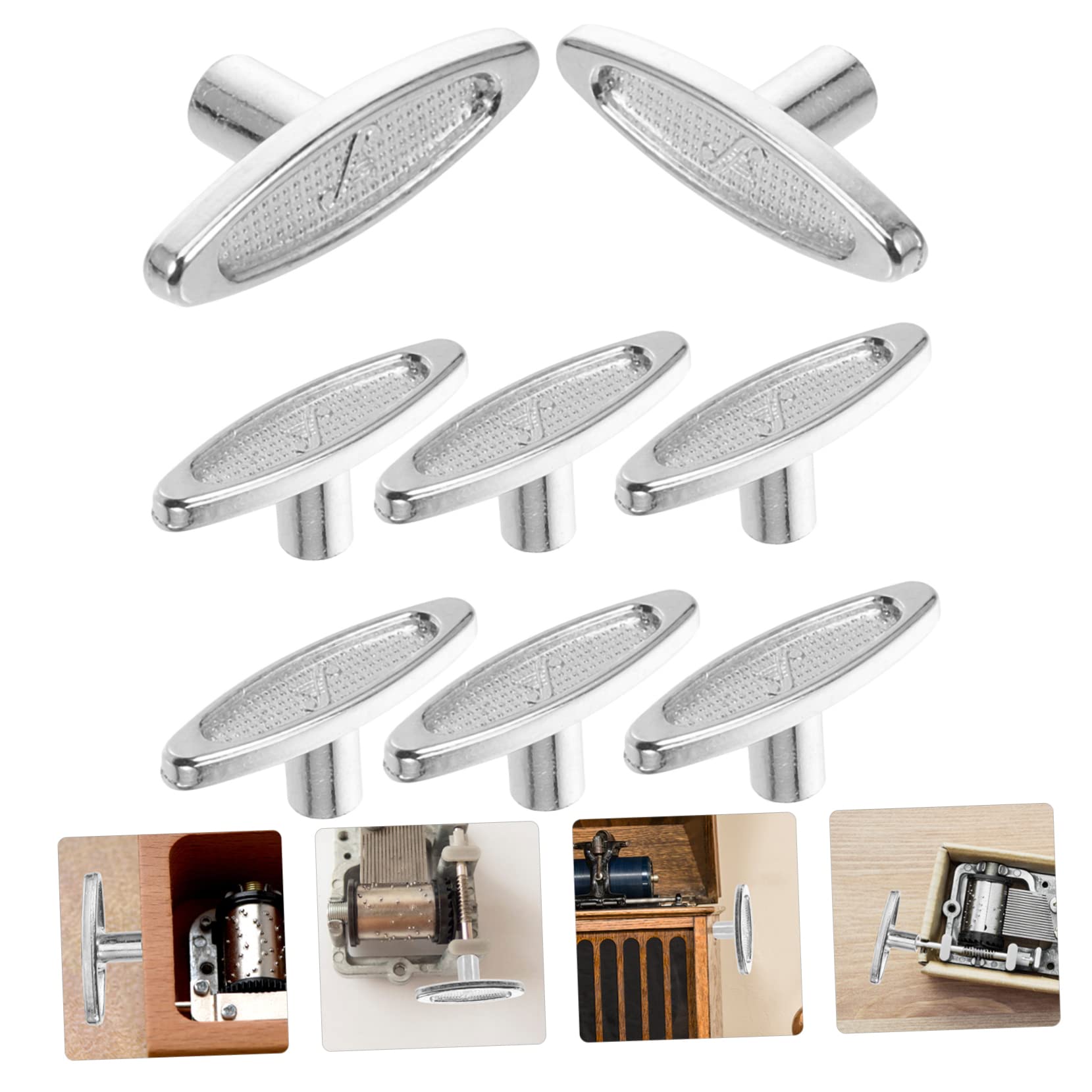 Genau das was du brauchst um deine Spieluhr wieder zum Laufen zu bringen! 10 Stück Aufziehschlüssel aus Metall, super robust und langlebig. Die T-Bar Form liegt gut in der Hand und das Aufziehen geht damit ganz leicht. Jeder Schlüssel ist 2,5x1x0,7cm groß - klein und handlich, passt in jede Tasche. Kompatibel mit den meisten Spieluhren, perfekt also als Ersatz wenn der Originale kaputt gegangen ist. Auch super für DIY Projekte wenn du selbst was basteln willst. Einfach in die Spieluhr stecken und drehen - schon läuft die Musik wieder. Die goldenen Schlüssel sehen auch noch richtig schick aus. Aus Metalllegierung, halten ewig und brechen nicht so schnell. Wenn du mehrere Spieluhren hast, sind 10 Stück ideal - dann hast du immer Ersatz parat. Einfach bestellen und deine Spieluhren sind wieder fit! Damit machst du auch ein super Geschenk für jemanden der Spieluhren sammelt oder repariert.