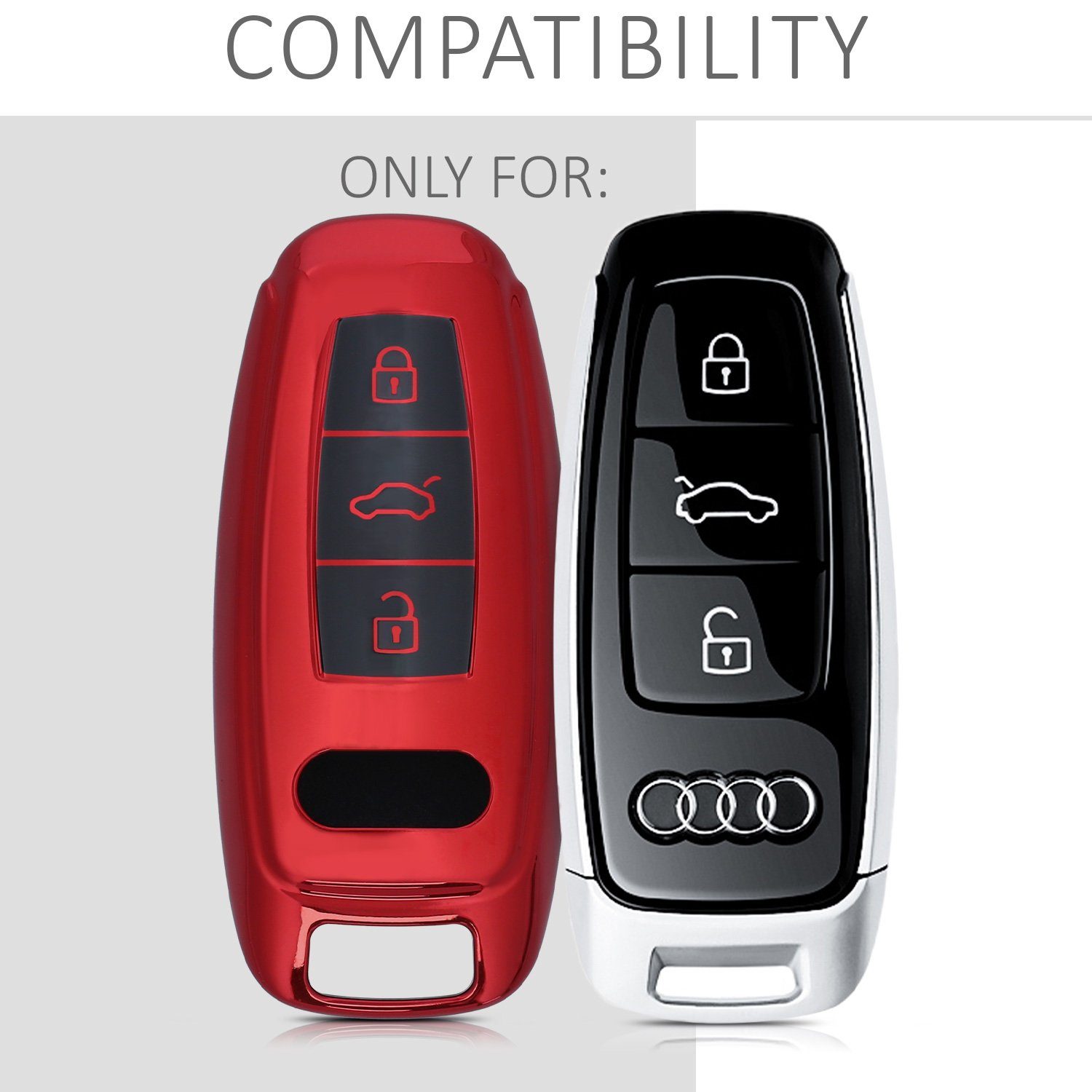 Kompatibel mit vielen Audi-Modellen: A6, A7, A8, Q7, Q8, E-Tron und sogar den sportlichen S und RS Versionen. Bevor du bestellst, vergleiche aber unbedingt dein Schlüsselmodell mit den Bildern - dann steht dem perfekten Schutz nichts im Weg!