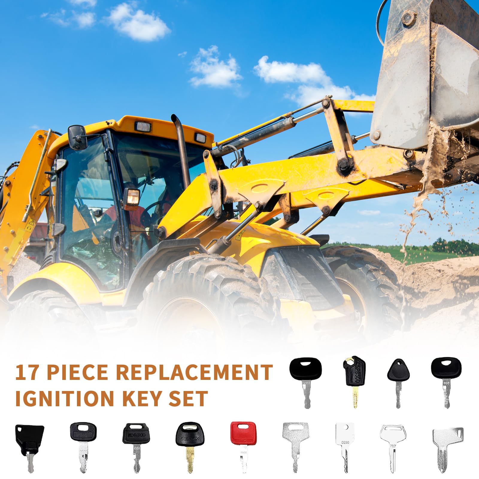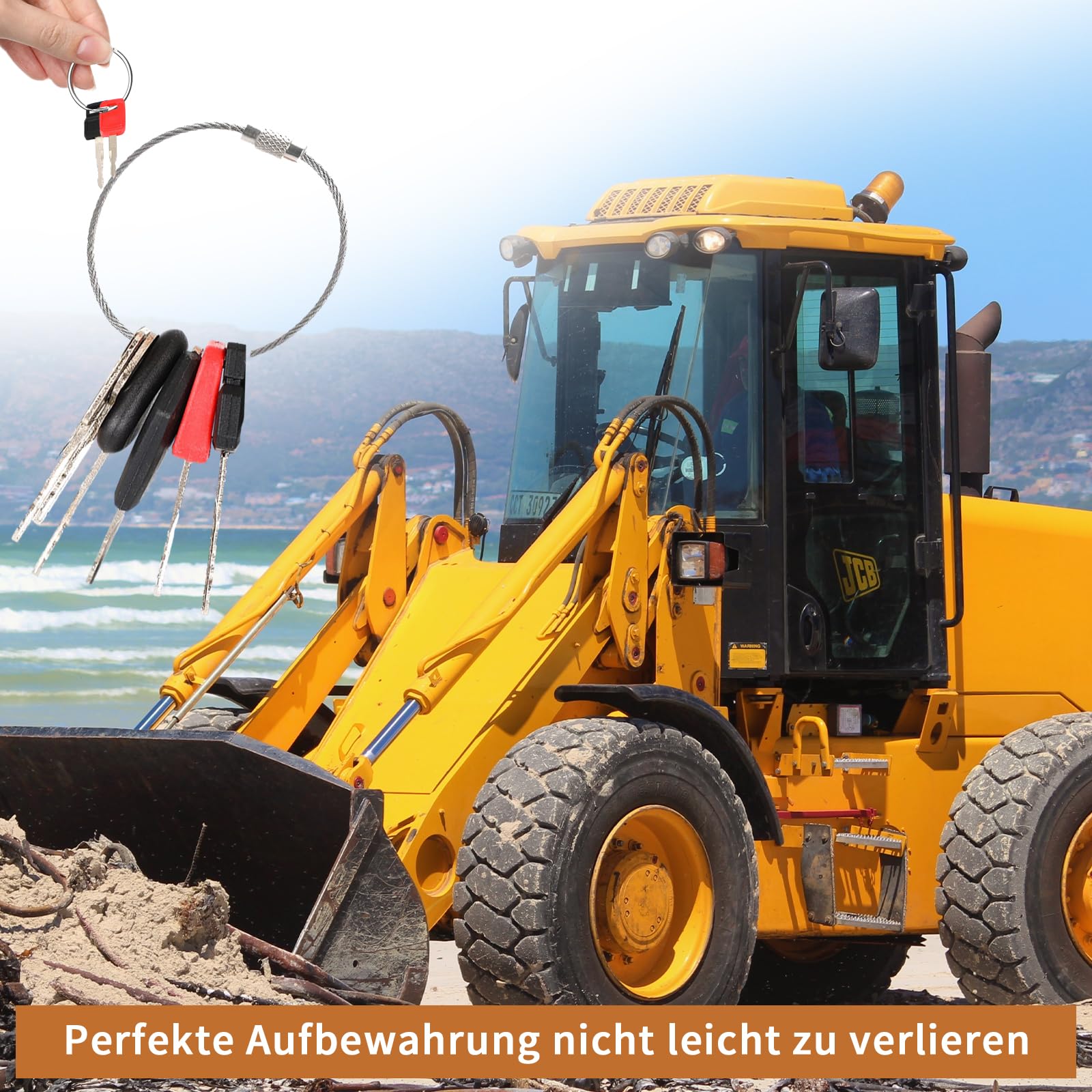 Perfekt für alle, die mit Baumaschinen arbeiten! Dieses 17-teilige Schlüssel-Set ist ein echter Allrounder für Traktoren, Bagger und andere Fahrzeuge. Enthalten sind 13 verschiedene Zündschlüssel in den Modellen 5P8500, 459, RE183935, K250, 777, JCB, 606, 14603, 787, 301, H806, D250 und H800 - also wirklich für fast alles geeignet. Dazu kommen 4 praktische Schlüsselanhänger aus rostfreiem Stahl, damit nichts verloren geht. Die Schlüssel sind aus einer robusten Kombination von Metall und Kunststoff gefertigt und halten auch bei täglichem Einsatz problemlos durch. Super praktisch: Du kannst alle Schlüssel einfach an den Anhängern befestigen und hast sie immer griffbereit. Ob für Zündungen, Türen oder Tankdeckel - dieses Set hat für jede Situation den passenden Schlüssel!