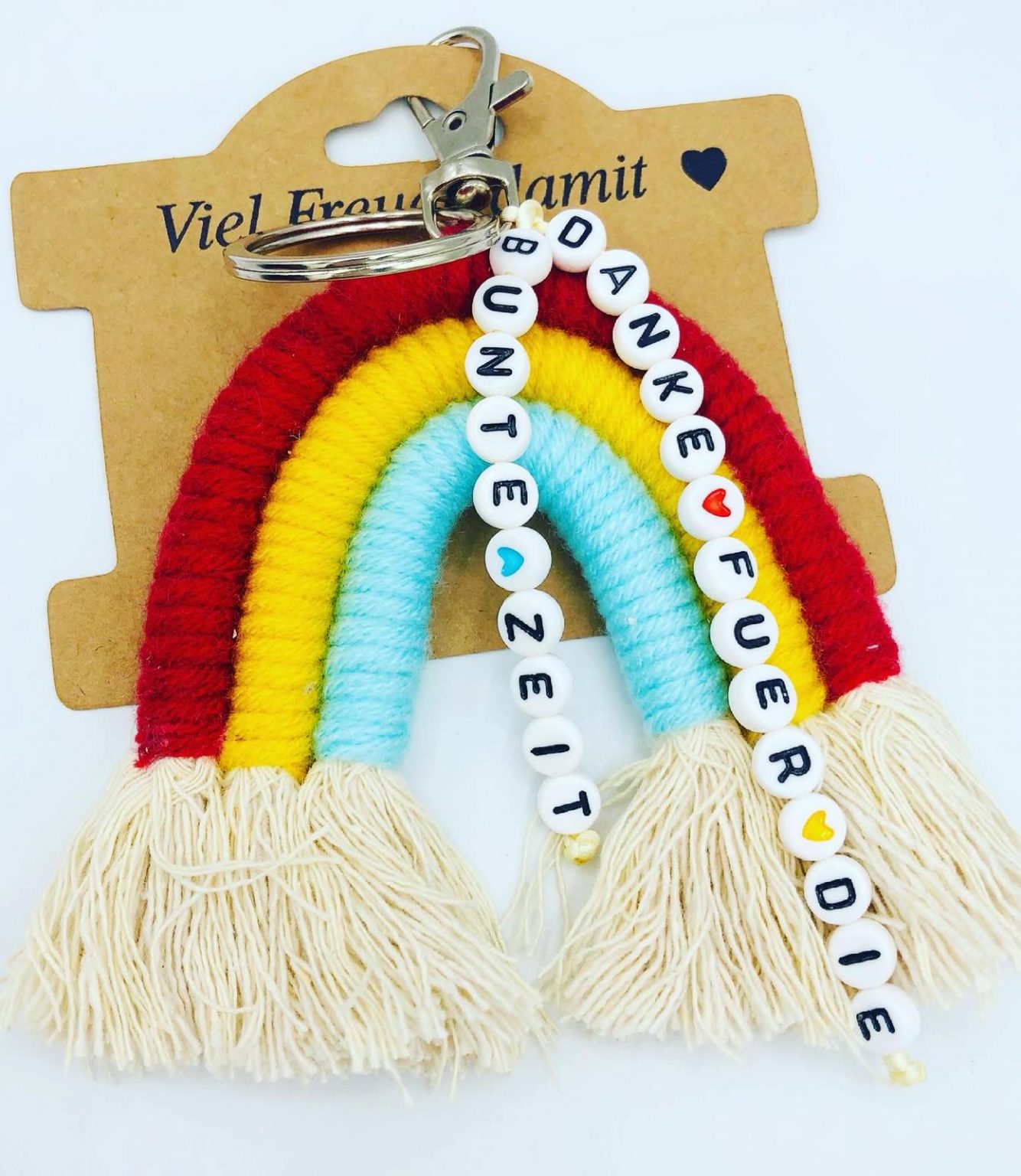 Ob an Schlüsseln, Geldbörsen, Rucksäcken oder Handytaschen - dieser fröhliche Regenbogen verleiht deinen Sachen sofort persönlichen Charme. Die weichen, frischen Farben passen zu jedem Outfit und bringen sommerliche Leichtigkeit in deinen Look.