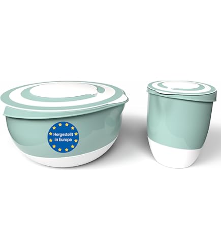 Mit nem Durchmesser von 18 cm und ner Höhe von 13 cm passen sie super in jede Küche. Die Gummifüße sorgen dafür, dass nichts verrutscht – selbst wenn es hektisch wird. Aus hochwertigem, schadstoffgeprüftem Kunststoff, also absolut lebensmittelecht. Und ja, sie sind spülmaschinenfest! Mehrweg-Geschirr, das im Alltag einfach funktioniert. Hol dir das Set und mach dir das Leben leichter!