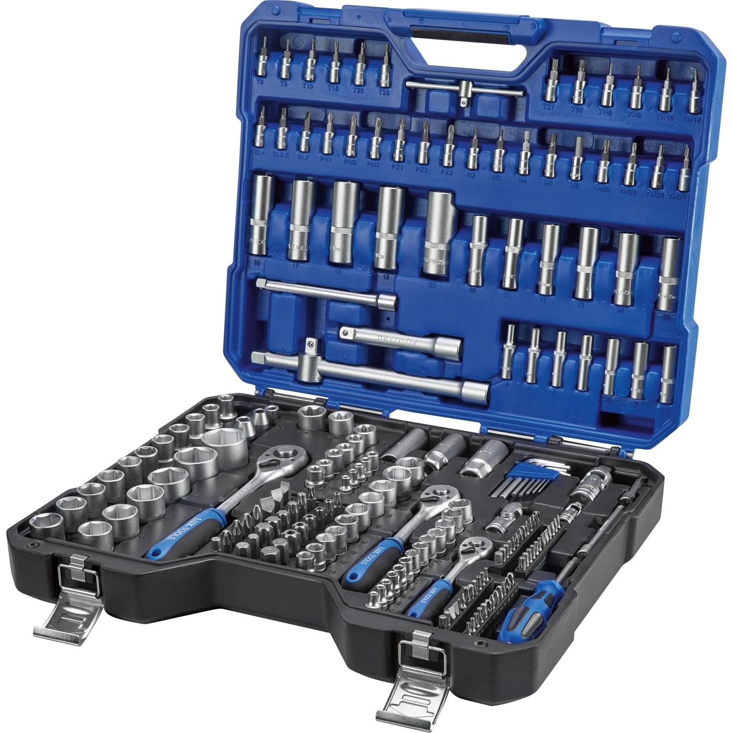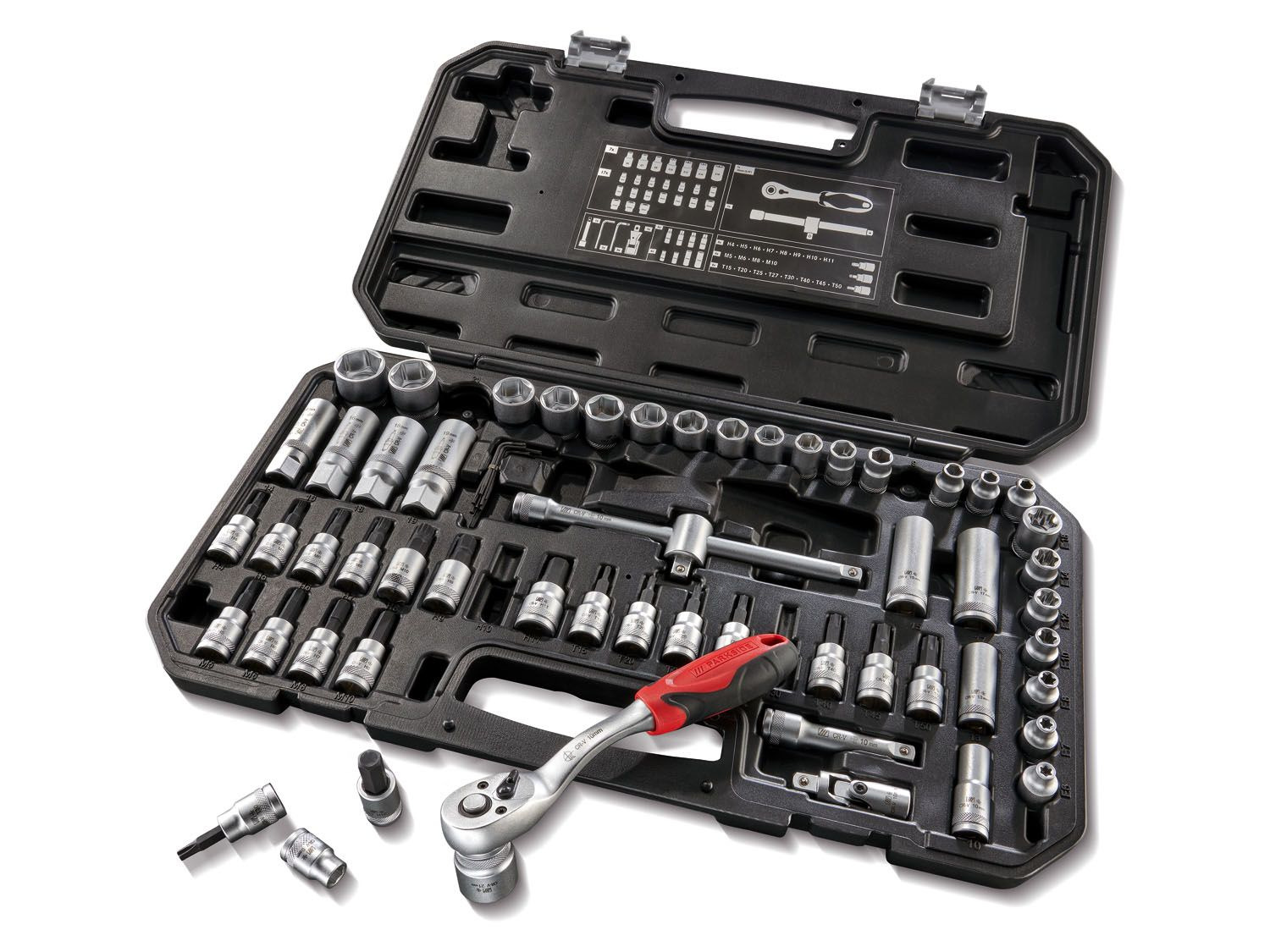 Boah, dieser 65-teilige Steckschlüsselsatz hat wirklich ALLES, was du brauchst! Mit 1/4 und 3/8 Antrieb bist du für jede Schraube gewappnet. Von 4mm bis 24mm ist jede Größe dabei - da macht keine Schraube mehr Probleme. Die beiden Ratschen sind super smooth, und die Verlängerungen helfen dir auch in den engsten Ecken. Das beste: Der stabile Kunststoffkoffer hält alles ordentlich zusammen - kein Suchen mehr! Bits für Schlitz, Phillips und Torx sind auch dabei. Egal ob du Möbel aufbaust, am Auto schraubst oder einfach nur was reparieren willst - mit diesem Set bist du der King im Heimwerken! Qualitativ total hochwertig verarbeitet - das hält ewig!