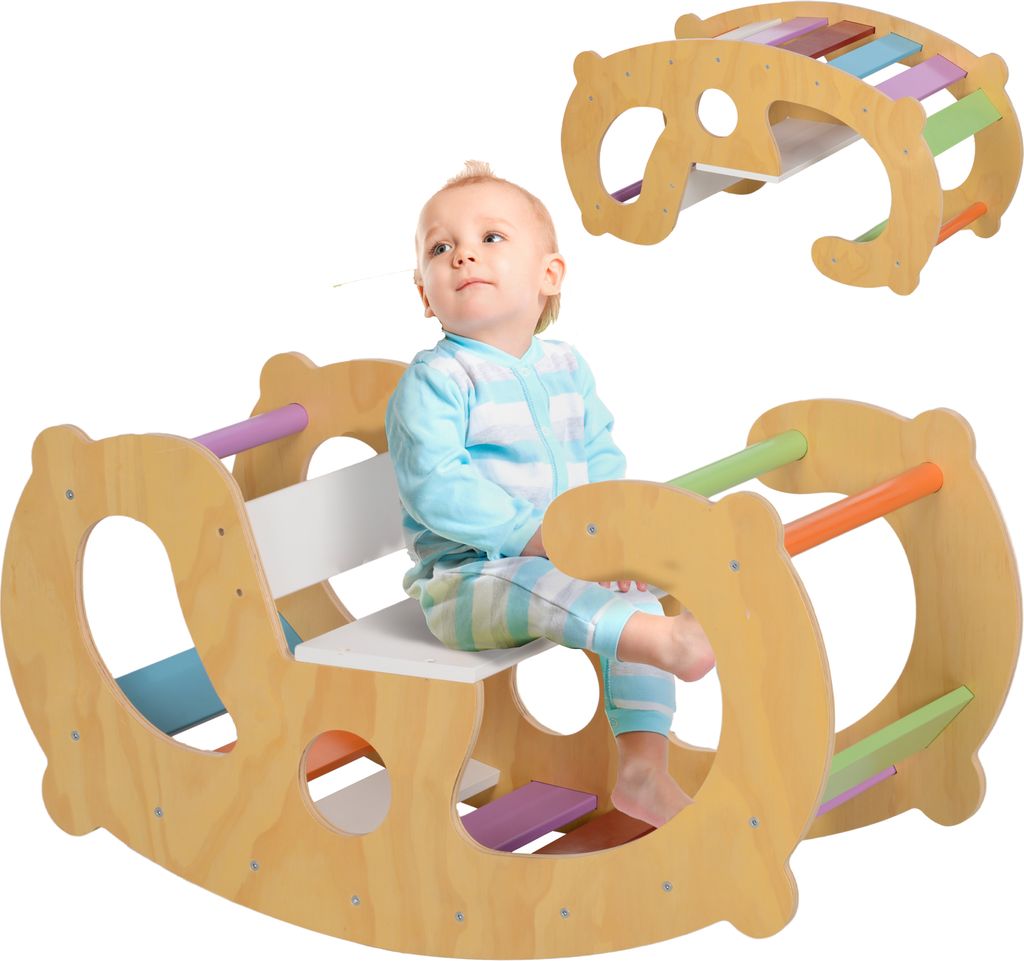 Was für ein cooles Spielgerät! Dieses AIYAPLAY 3-in-1 Klettergerüst verwandelt dein Zuhause in einen Abenteuerspielplatz. Aus stabilem Mehrschicht-Kiefernholz mit glatter Oberfläche - sicher und langlebig. Mit verstellbarer Leiter und wendbarer Rutsche, die auch als Kletterwand dient. Faltbar für einfache Lagerung, hält bis zu 50 kg aus. Perfekt für Kinder von 1,5 bis 4 Jahren - fördert Motorik und Gleichgewichtssinn. Ob alleine oder zu zweit - hier ist Spielspaß garantiert! Einfach aufbauen und die Kleinen klettern lassen.