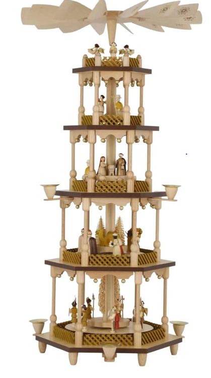 • Weihnachtspyramide 4-stöckig - 75cm Original Erzgebirge Mit Christi Geburt