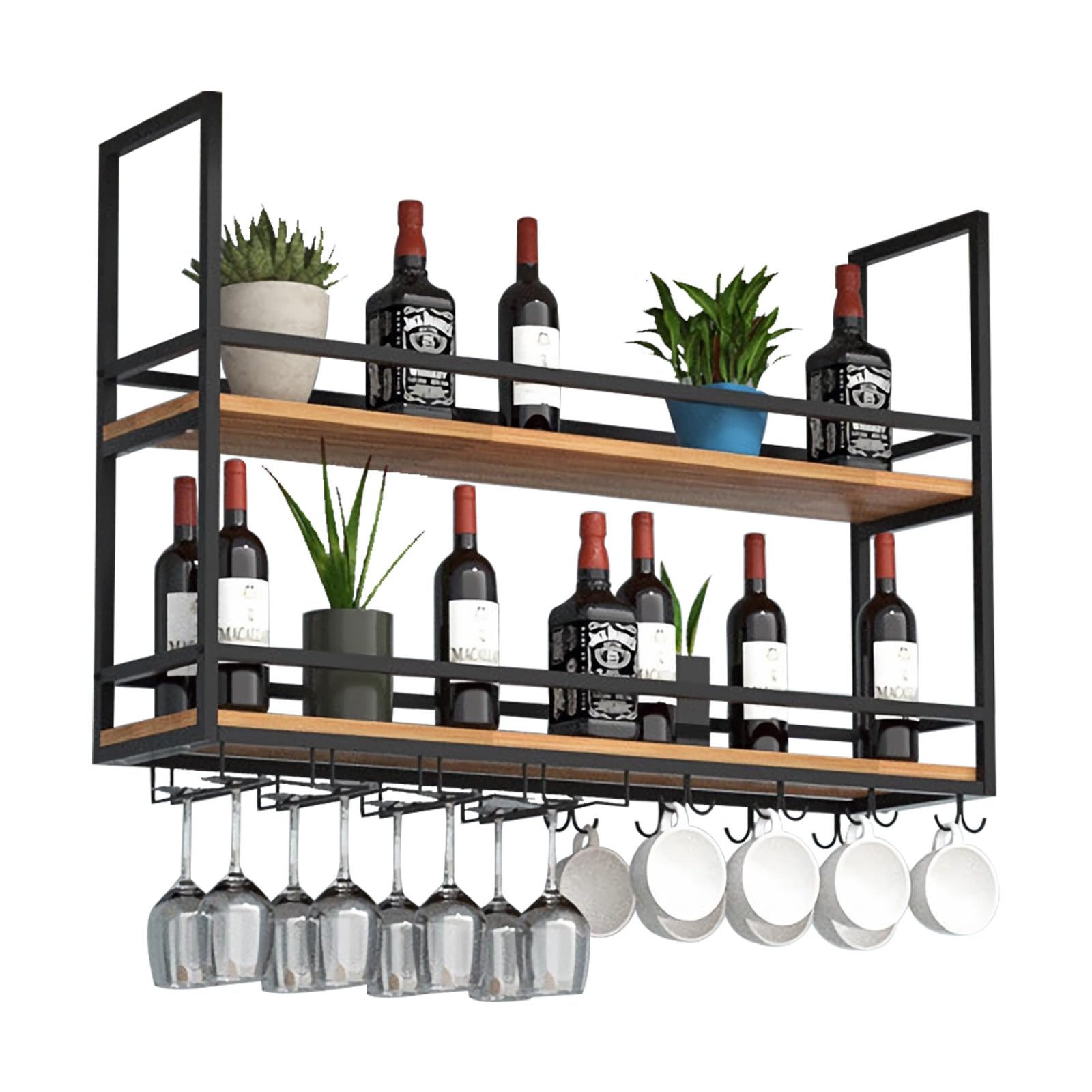 Deckenregal Weinregal 2-stöckig - Industrieller Weinflaschenhalter Mit Glasaufhängung 120x30cm