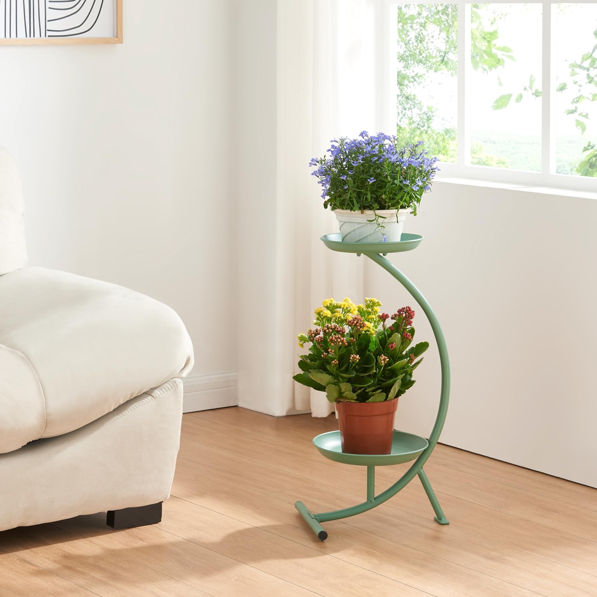 Wow, dieser Blumenständer ist einfach der Hit für alle Pflanzenliebhaber! Mit seinen zwei Etagen bietet er genug Platz für deine liebsten Grünpflanzen und Blumentöpfe. Aus stabilem Eisen und dicken Holzplatten (0,62 Zoll) gefertigt, steht er bombenfest und wackelt kein bisschen. Das rustikale Design in Braun passt super in Wohnzimmer, auf den Balkon oder die Terrasse. Mit 50 cm Höhe und 30 cm Durchmesser ist er platzsparend und macht trotzdem was her. Besonders praktisch: Die runde Form und die gebogenen Beine geben ihm einen richtig stylischen Look. Montieren kannst du ihn ganz easy - alles dabei, keine komplizierte Bastelei. Ob als reiner Blumenständer, als kleiner Beistelltisch oder sogar als Couchtisch - dieses Teil ist mega vielseitig. Und das Beste: Er hält nicht nur drinnen, sondern auch in überdachten Außenbereichen problemlos durch. Einfach deine Pflanzen draufstellen und den gemütlichen Flair genießen!