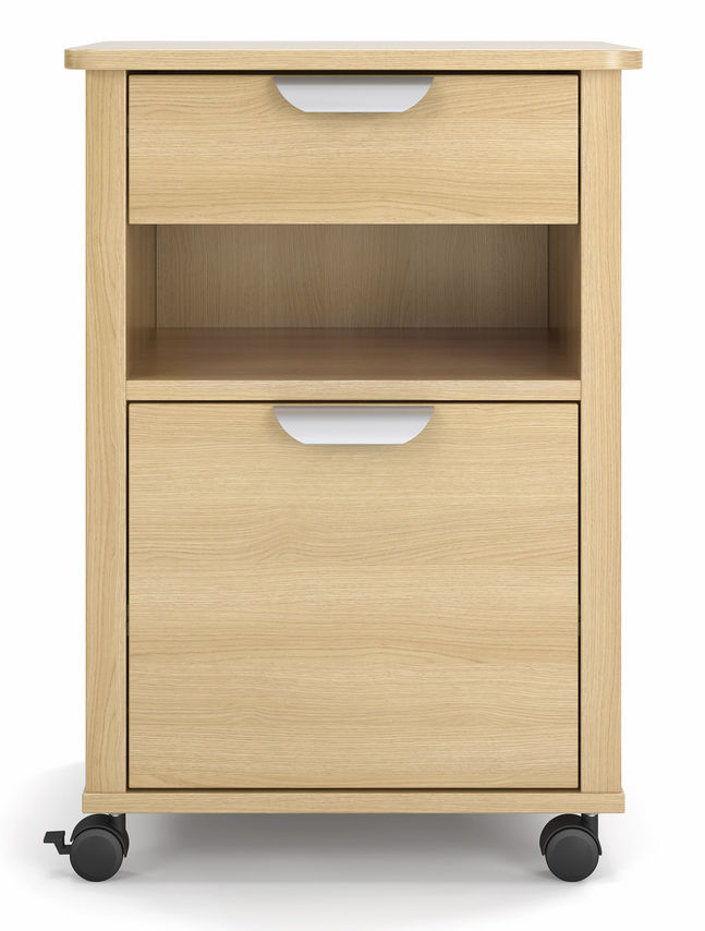 Brauchst du mehr Stauraum neben dem Bett? Dieser coole Nachttisch auf Rollen ist deine Lösung! Mit drei Ebenen und praktischen Türen hast du alles griffbereit, was du nachts brauchst - Bücher, Handy, Brille, was auch immer.
