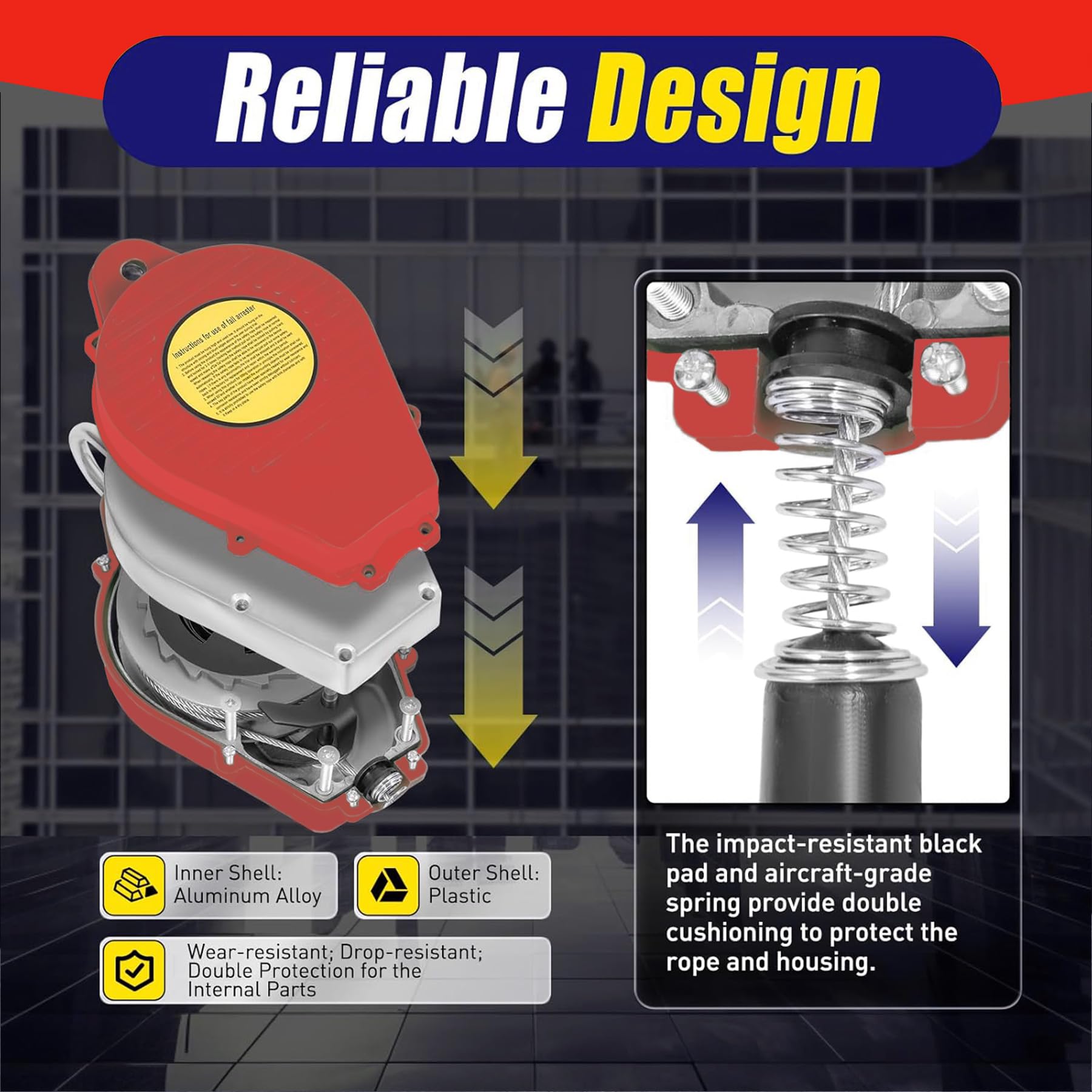 Achtung, Sicherheit geht vor! Dieses Höhensicherungsgerät ist dein Lebensretter bei Arbeiten in der Höhe. Mit 10 Meter Stahldrahtseil und automatischer Sperrfunktion - bei nem Sturz bremst es innerhalb von 0,2 Metern! Hält bis zu 200 kg aus und ist hitzebeständig bis 200°C. Die Doppelscheibenbremse und Doppelverriegelungsstruktur sorgen für absolute Sicherheit. Automatisches Einziehen des Seils macht die Handhabung super einfach. Perfekt für Hochbau, Schiffsreparatur, Dacharbeit, Elektroinstallation und Brückenbau. Einfach über dem Arbeitsbereich aufhängen und du bist safe! Denk dran: Vor jedem Einsatz kurz testen und nie das Seil verdrehen. Dein Leben ist es wert!