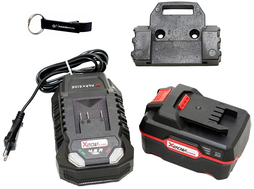 HEADNMORE Bundle | Parkside 20V Ladegerät 2,4A + Flaschenöffner Schlüsselanhänger - Ohne Akku
