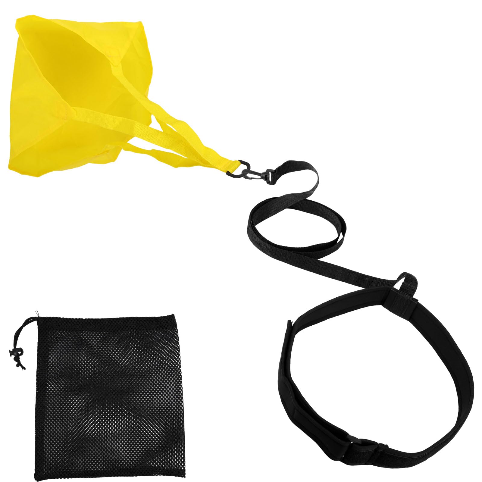 Komplett-Set mit Fallschirm, Gürtel, Zugseil und Transporttasche. Aus robustem Nylon und Stoff - hält auch intensivem Training stand.