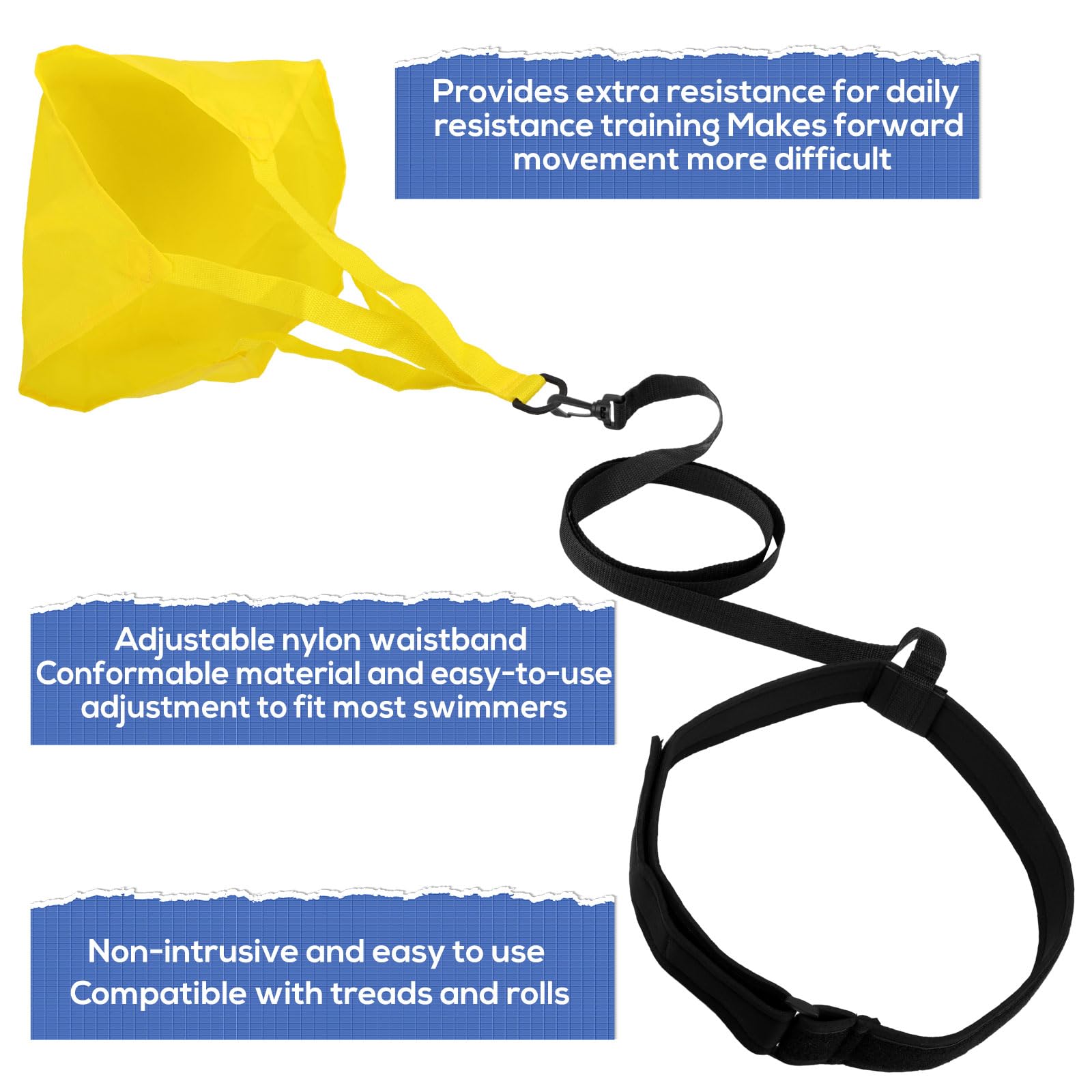 Willst du schneller schwimmen? Dieser Schwimmfallschirm erhöht den Wasserwiderstand und trainiert deine Kraft und Ausdauer. Mit 60x40cm Größe für optimalen Widerstand.
