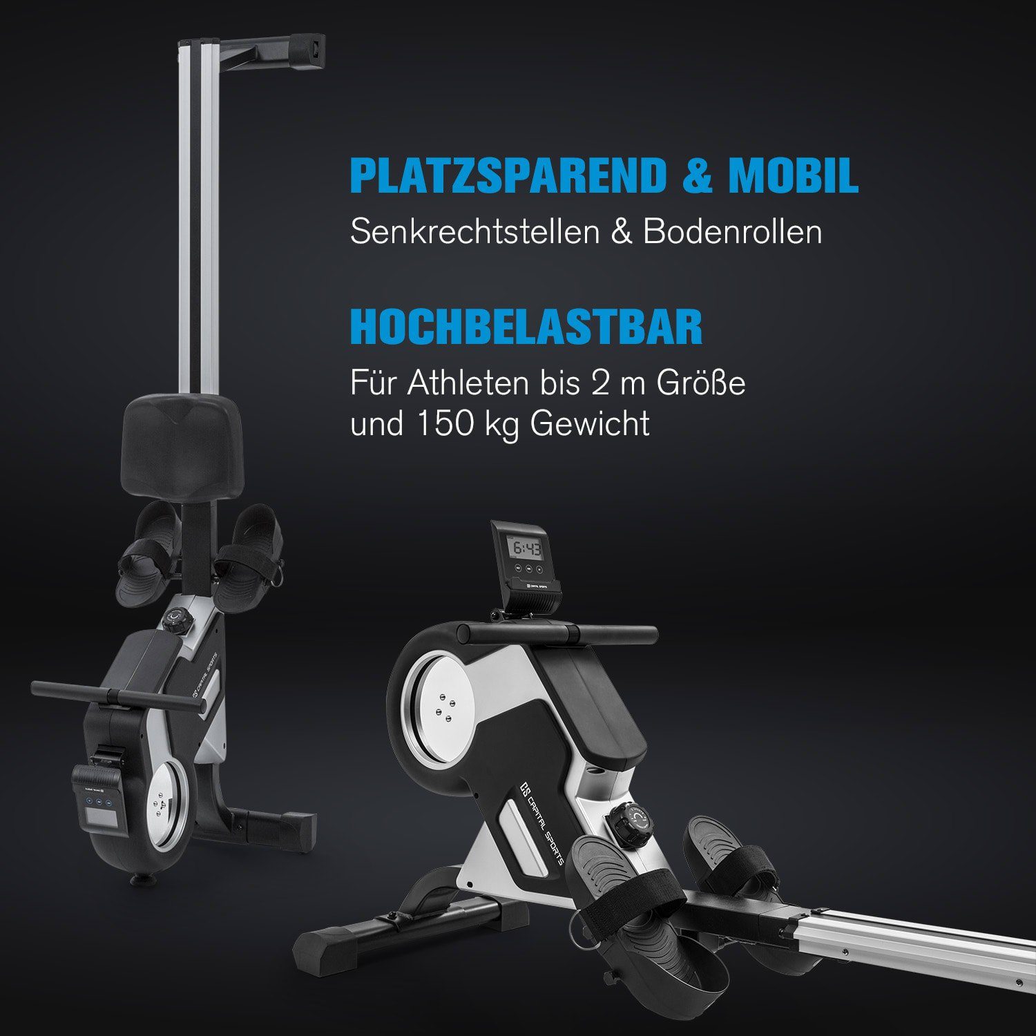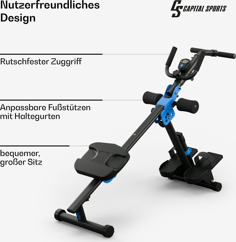 Suchst du ein effektives Ganzkörpertraining für zu Hause? Dieses Capital Sports Rudergerät ist perfekt für dich! Mit 8 einstellbaren Magnetwiderstandsstufen kannst du dein Training genau an deine Fitness anpassen. Die 105cm lange Aluminium-Schiebeschiene sorgt für ein flüssiges und gelenkschonendes Rudergefühl. Maximal 150kg belastbar und für Personen bis 2m Körpergröße geeignet. Das LCD-Display zeigt dir Zeit, Ruderschläge, Distanz und Kalorienverbrauch an. Praktisch: Integrierter Tablet-Halter für Unterhaltung während des Trainings. Und das Beste: Das Gerät ist klappbar und hat Rollen - nach dem Training einfach zusammenklappen und platzsparend verstauen. Nahezu lautlos dank Magnetwiderstand - perfekt für Mehrfamilienhäuser. Mit diesem Profi-Rudergerät trainierst du Beine, Arme, Rücken und Bauch gleichzeitig. Ein echter Allrounder für dein Home-Gym!