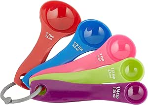 Boah, diese bunten Messlöffel sind ja mal richtig praktisch! Mit dem 4-teiligen Set von Colourworks hast du immer die richtige Größe zur Hand: 1, 1/2, 1/4 und 1/8 Cup. Super für alle, die gerne backen oder amerikanische Rezepte ausprobieren. Die schmale, geschwungene Form ist genial - damit kommst du auch in die engsten Gewürzgläser! Aus robustem ABS-Kunststoff und komplett lebensmittelecht. Die Maße sind waschfest aufgedruckt, also keine Sorge, dass was abgeht. Mit dem praktischen Ring bleiben alle Löffel zusammen - entweder aufhängen oder in der Schublade verstauen. Spülmaschinenfest sind sie auch noch! Die bunten Farben bringen richtig Leben in die Küche. Ob für Mehl, Zucker, Kaffee oder Gewürze - mit diesen Löffeln machst du garantiert nichts falsch. Kein lästiges Umrechnen mehr von Cup in Milliliter - alles ist schon draufsteht. Einfach genial für Hobby-Bäcker und Koch-Enthusiasten!