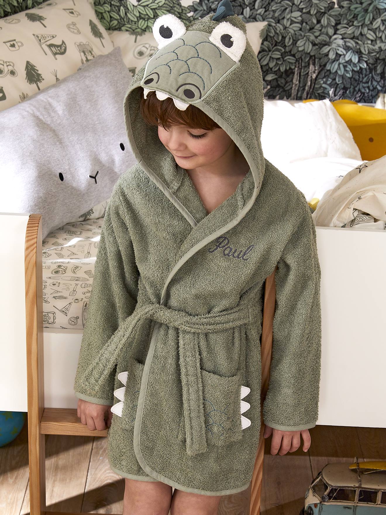 So süß! Dieser Kinder Bademantel von VERTBAUDET ist perfekt für kleine Wasserratten. In schickem OZEAN-Grün mit gestreiftem Design sieht er nicht nur niedlich aus, sondern ist auch super praktisch. \\n\\nHergestellt aus weichem Frottee aus 100% Baumwolle - davon 20% Recycling-Baumwolle. Ein Schritt in Richtung Nachhaltigkeit! Mit praktischer Kapuze, zwei Taschen und einem elastischen, festgenähten Gürtel. \\n\\nGröße 98/104 passt für die meisten Kinder im entsprechenden Alter. Weich, kuschelig und saugstark - ideal nach dem Baden, Schwimmen oder einfach zum Drinrumlaufen. \\n\\nEinfach in der Pflege: Bei 40°C waschbar und für den Trockner geeignet. Ein tolles Geschenk für kleine Mädchen und Jungs, die nach dem Baden nicht frieren wollen!