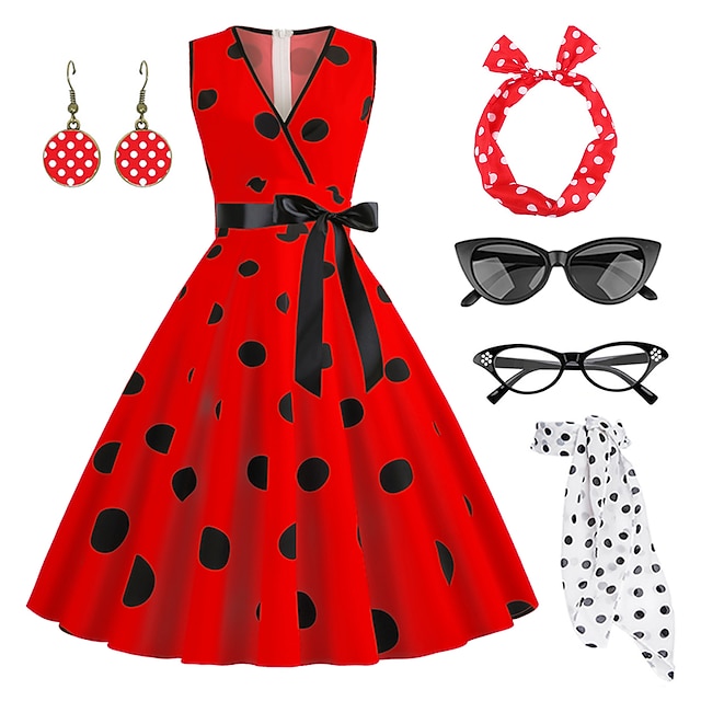Alter, dieses 50er Jahre Set ist ja mal der absolute Hammer für alle Retro-Fans! Mit den typischen Polka Dot Punkten und den schwarz-roten Akzenten siehst du aus wie direkt aus den 50ern.