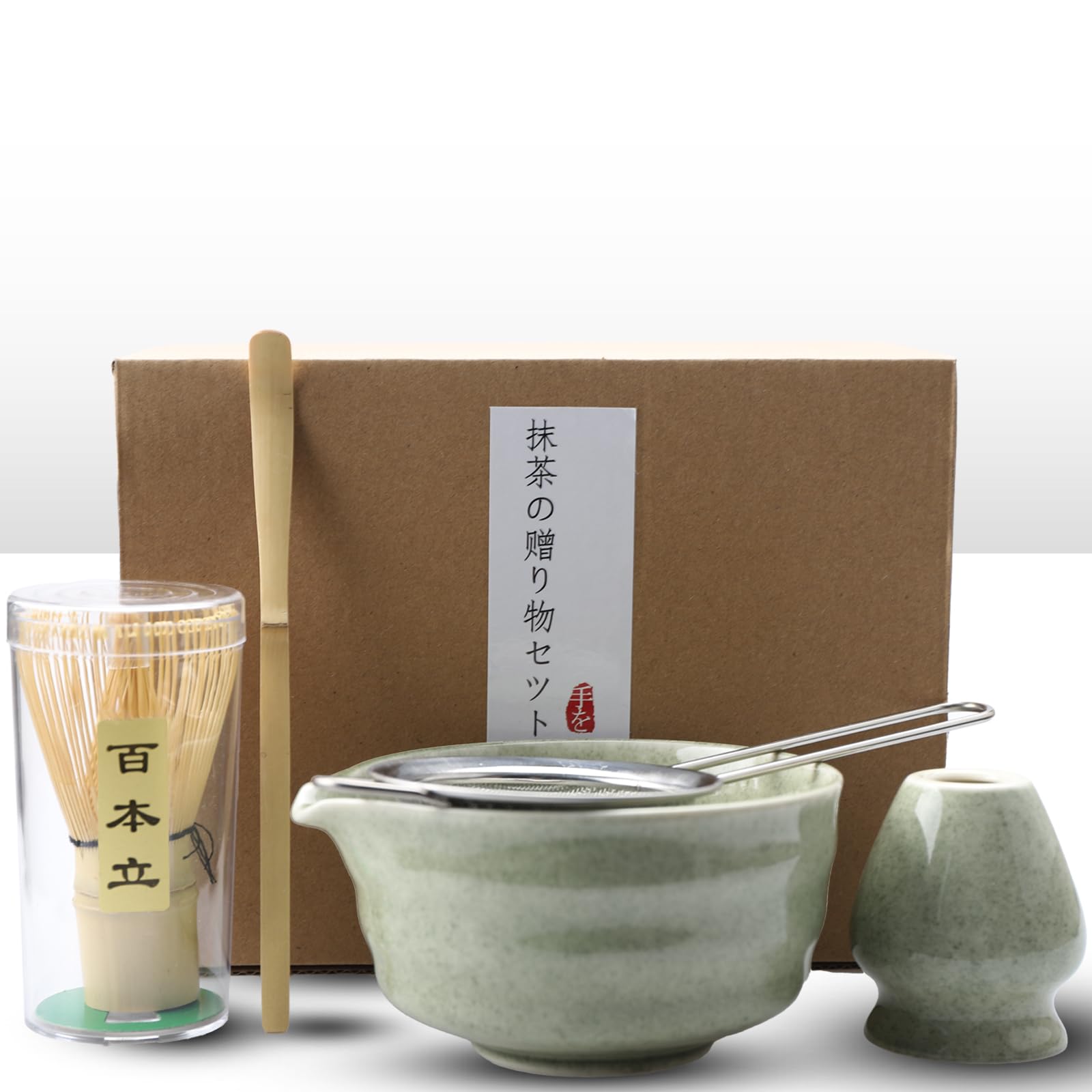 Matcha-Liebhaber aufgepasst! Dieses 5-teilige Set hat alles, was du für die perfekte Matcha-Zubereitung brauchst. Enthalten sind: Bambus-Schneebesen, Bambuslöffel, 500ml Keramikschale, Schneebesenständer und Matcha-Sieb. Die Keramikschale mit praktischem Ausgussdesign verhindert Kleckern und sorgt für perfektes Ausgießen. Der handgefertigte Bambusbesen mixt deinen Matcha cremig und schaumig - ohne bitteren Beigeschmack! Alles in schickem Matcha-Grün verpackt in einer Geschenkbox. Super für Anfänger und Profis gleichermaßen. Ob zu Hause, im Büro oder im Café - mit diesem Set genießt du authentischen japanischen Matcha wie ein Profi. Ein tolles Geschenk für Tee-Freunde zu Weihnachten, Geburtstag oder einfach so!