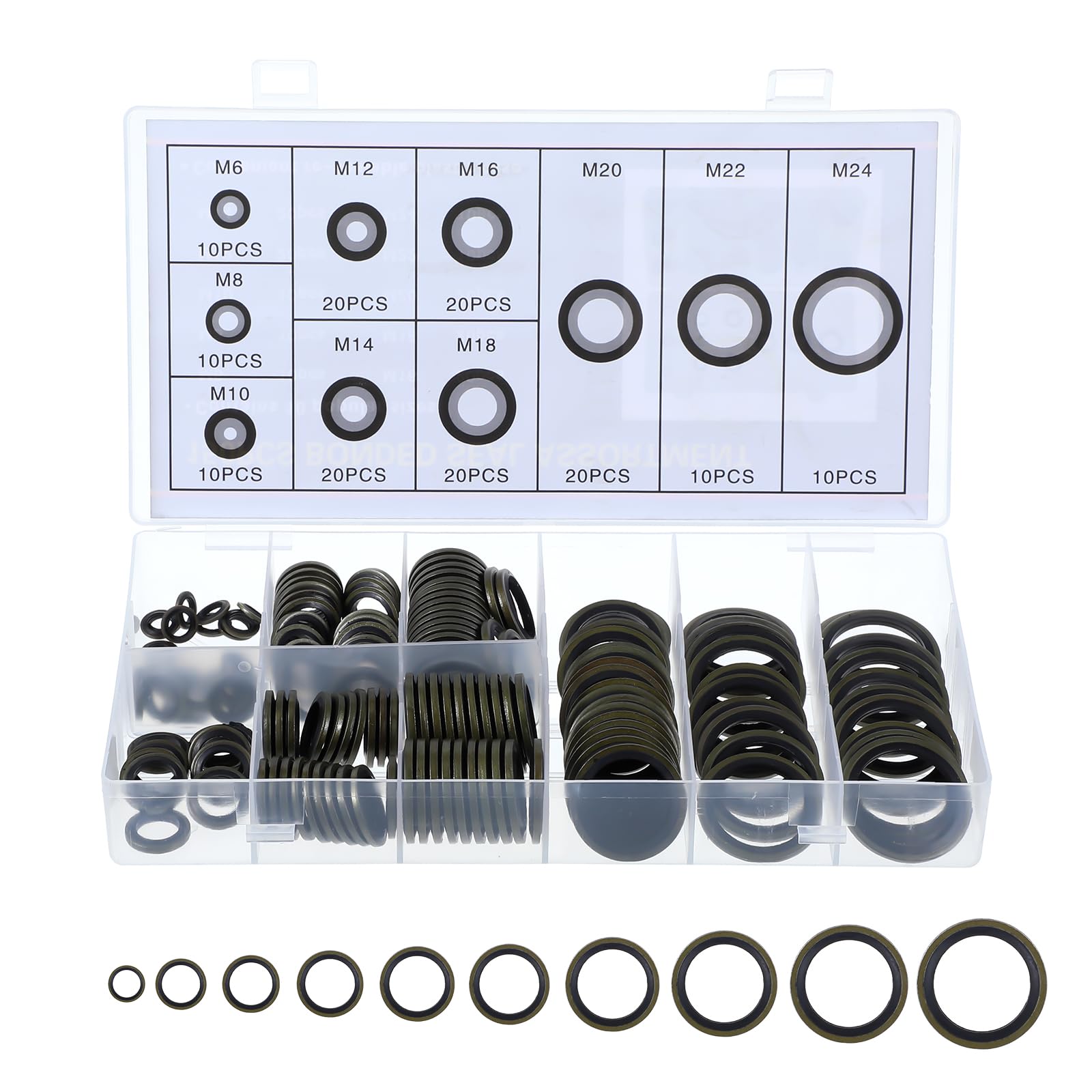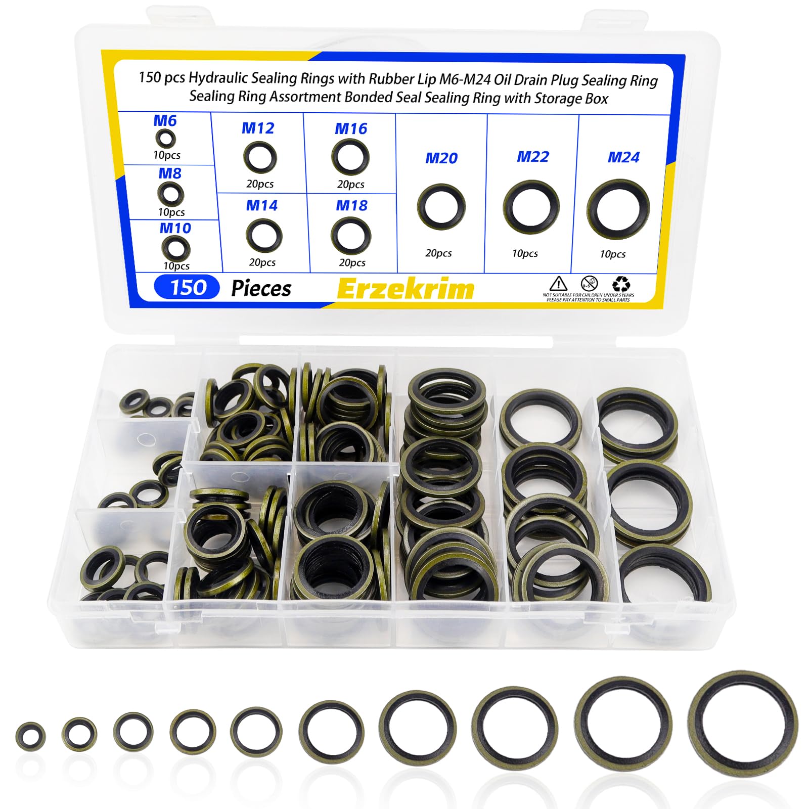 Das komplette Set für alle Dichtungs-Arbeiten! 150 Hydraulik-Dichtringe in den Größen M6 bis M24 - von klein bis groß ist alles dabei. Jeder Dichtring besteht aus Gummi und Metall für perfekte Abdichtung unter Druck. Hält Temperaturen von -21°C bis 120°C stand und ist öl- sowie säurebeständig. Perfekt für Servolenkungen, Zentral-Hydraulik und allgemeine Reparaturen. Die praktische Aufbewahrungsbox mit separaten Fächern sorgt für perfekte Ordnung. Ein Muss für jede Werkstatt - ob Profi oder Heimwerker. Nie wieder undichte Schrauben!