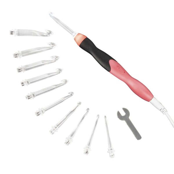 Häkeln bei Dunkelheit? Kein Problem mit diesen genialen LED-Häkelnadeln! Das INMAKER Set hat 18 verschiedene Nadelgrößen von 2 bis 14 mm - da ist für jedes Projekt die passende Nadel dabei. Und das Beste: Sie leuchten! \\n\\nZwei Helligkeitsstufen sorgen dafür, dass du auch mit dunklem Garn oder bei dämmrigem Licht perfekt siehst, was du tust. Kein Gefriemel mehr! Und die Akkus sind in nur 15 Minuten voll - dann häkelst du damit 6-9 Stunden lang. \\n\\nDas ergonomische Design ist super bequem in der Hand, auch wenn du stundenlang am Stück häkelst. Besonders praktisch für alle mit Handproblemen wie Arthritis! Und die Zählfunktion hilft dir, die Reihen nicht zu verlieren - einfach Knopf drücken und weiterhäkeln. \\n\\nAlles schön verpackt in einer eleganten Box - ein traumhaftes Geschenk für alle Häkelfans! Egal ob Anfänger oder Profi, mit diesen Nadeln macht Häkeln doppelt Spaß. \\n\\n18 Nadelgrößen: 2-14mm | LED-Beleuchtung mit 2 Stufen | Akku: 15 min laden, 6-9 h Laufzeit | Ergonomischer Griff | Zählfunktion | Inkl. Anleitung | Geschenkbox