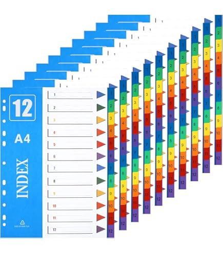 Jedes Register hat 12 farbige Tabs in Rosa, Blau, Rot, Grün, Gelb und Violett. So kannst du verschiedene Kategorien farblich kennzeichnen und findest alles blitzschnell wieder. Die Trennblätter sind extra stark und reißen nicht so leicht.