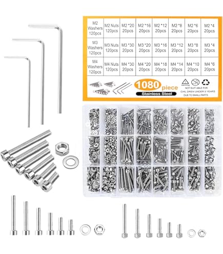 Boah, was für ein umfangreiches Schrauben-Set! 🔩 Ganze 1080 Teile in den Größen M2 bis M5 - da findest du für fast jedes Projekt die passende Schraube! Aus robustem legiertem Stahl der Festigkeitsklasse 10.9 gefertigt, sind diese Schrauben richtig widerstandsfähig gegen Rost, hohe Temperaturen und Abnutzung. Das Set enthält nicht nur Innensechskant-Schrauben mit Linsenkopf, sondern auch passende Muttern und Unterlegscheiben. Plus 4 Schraubenschlüssel liegen natürlich dabei! Besonders praktisch: Alles ist ordentlich in einer robusten Kunststoffbox verstaut und klar beschriftet - so findest du immer schnell, was du brauchst. Ob für 3D-Druck-Projekte, Möbelmontage, Fahrzeugreparaturen oder Heimwerkerarbeiten - dieses Set ist dein bester Freund in der Werkstatt! Die Muttern sorgen für eine größere Kontaktfläche und die Unterlegscheiben verteilen den Druck gleichmäßig. Einfach die Box aufmachen, die benötigte Größe raussuchen und loswerken! So macht Heimwerken Spaß! 🛠️