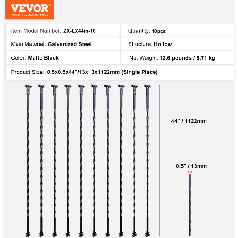 Dieses VEVOR Baluster-Set macht deine Treppe zum echten Hingucker! Im 10er-Pack bekommst du alles, was du für ein sicheres und stylisches Geländer brauchst. Die Spindeln sind aus robustem verzinktem Stahl mit 1,5 mm Wandstärke gefertigt und mit einer sattschwarzen Pulverbeschichtung versehen - die hält auch was aus! Mit 1122 mm Länge und 13x13 mm Querschnitt passen sie zu den meisten Geländersystemen. Im Lieferumfang sind neben den 10 Balustern auch 20 Balusterschuhe, 40 Schrauben und eine Aufbauanleitung enthalten. Die Montage ist supereinfach: Einfach Löcher bohren, Balusterschuhe befestigen und schon hast du ein professionelles Ergebnis. Der empfohlene Abstand zwischen den Spindeln beträgt nicht mehr als 10 cm - so ist auch die Sicherheit für Kinder gewährleistet. Ob für eine moderne Wendeltreppe oder ein klassisches Treppengeländer - diese Baluster verleihen jedem Raum eine besondere Eleganz!