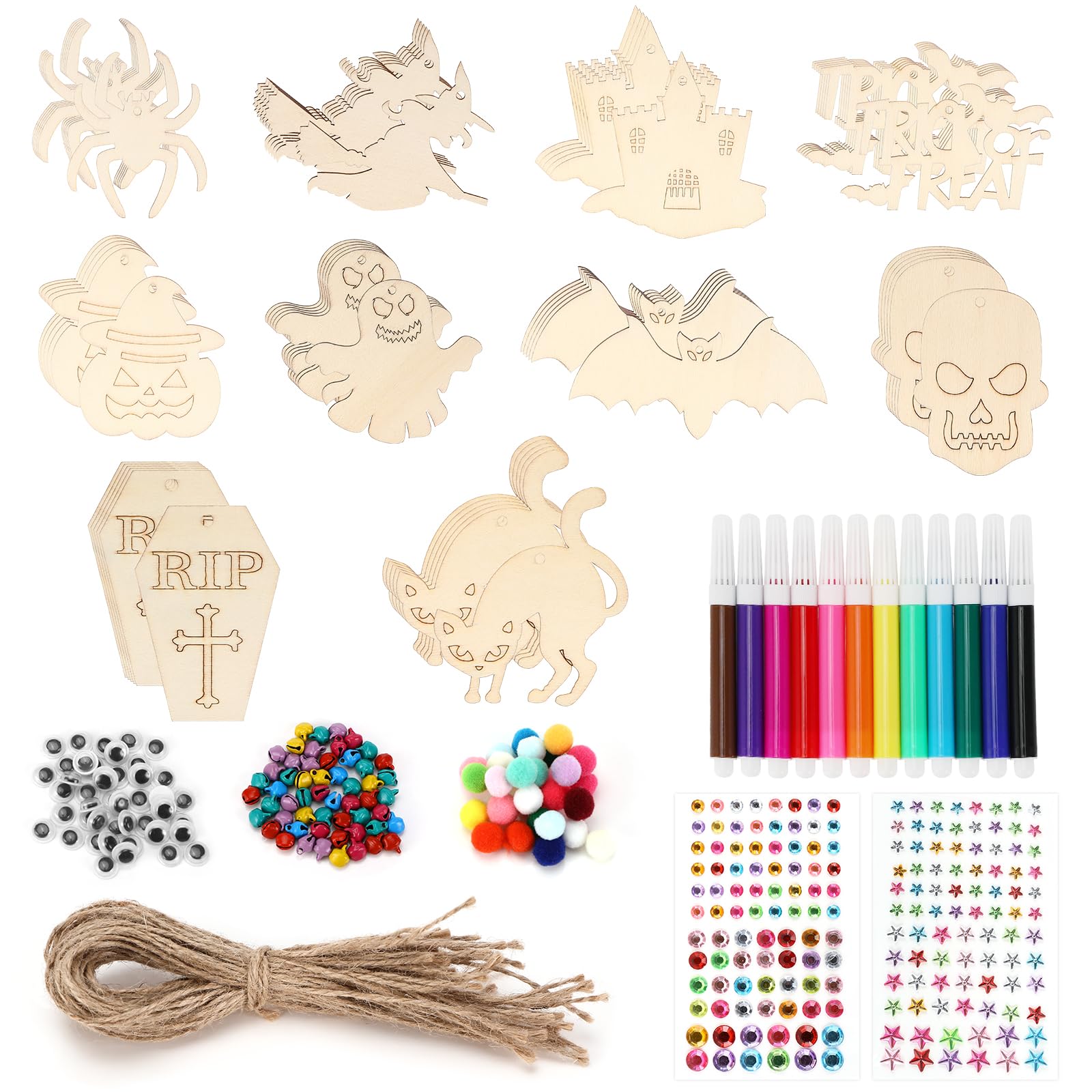 Alter, dieses Mispudin Halloween Bastelset macht richtig Spaß! Mit 12 Holzteilen: 2 Fledermäuse, 2 Geister, 2 Kürbisse, Katze, Spinne, Skelett, Hexe, Grabstein und noch ein Skelett - alles zum Selbstbemalen. Dazu 36 Windglockenröhren in 3 Farben, 6 Aquarellstifte, Silberfaden und Band. Die Holzfiguren sind robust mit glatten Kanten - super sicher für Kinder. Kannst deine eigenen gruseligen Windspiele basteln und an Türen, Fenstern oder im Garten aufhängen. Fördert die Kreativität und ist perfekt für Halloween-Partys. Aber nicht nur für Halloween - auch für Ostern oder Geburtstage umfunktionierbar. Tolles Geschenk für kleine und große Künstler. Macht jede Party zu einem unvergesslichen Erlebnis!