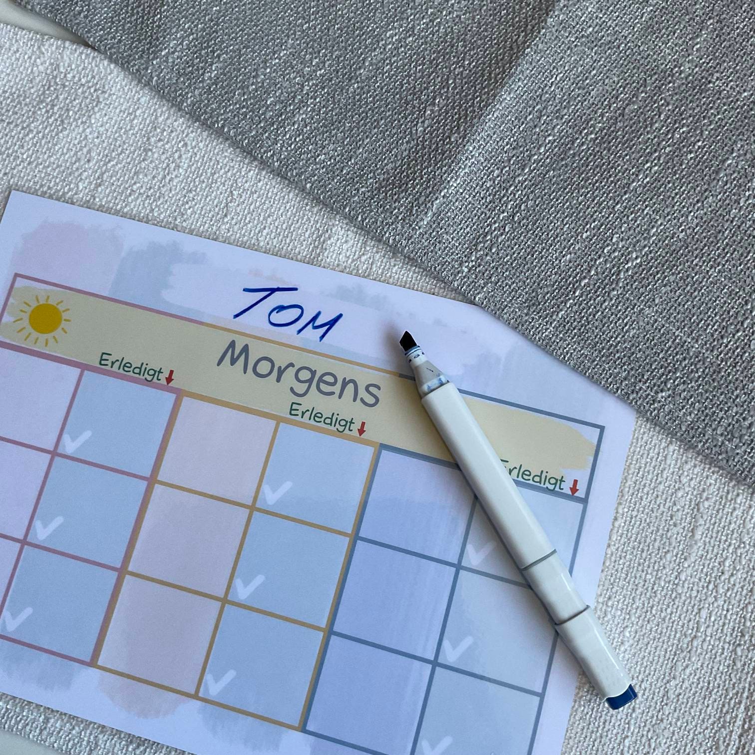Schluss mit dem Chaos! Diese 4 abwischbaren Checklisten-Tafeln helfen Kindern, ihren Tag selbst zu organisieren. Jedes Board misst 5,8x10cm - perfekt für kleine Hände. Aus robustem, geruchlosem Kunststoff gefertigt, halten sie auch bei täglichem Gebrauch lange. Die abwischbare Oberfläche ermöglicht unendliches Wiederbeschriften. Das geniale Schiebesystem lässt Kinder erledigte Aufgaben sichtbar markieren - das macht stolz und motiviert! Ideal für Morgen- und Abendroutinen, Hausaufgaben oder kleine Pflichten. Mit dabei: 4 bunte Boards (blau, grün, gelb, pink) und 4 Aufkleber zur individuellen Gestaltung. Der integrierte Schlüsselanhänger macht sie super mobil - einfach an Rucksack oder Schultasche befestigen. Besonders geeignet für Kinder mit ADHS oder allen, die Struktur im Alltag brauchen. So lernen Kinder spielerisch Selbstorganisation und Zeitmanagement. Perfekt für Zuhause, Schule oder unterwegs. Einfach mit Whiteboard-Marker beschreiben, abwischen und neu starten!