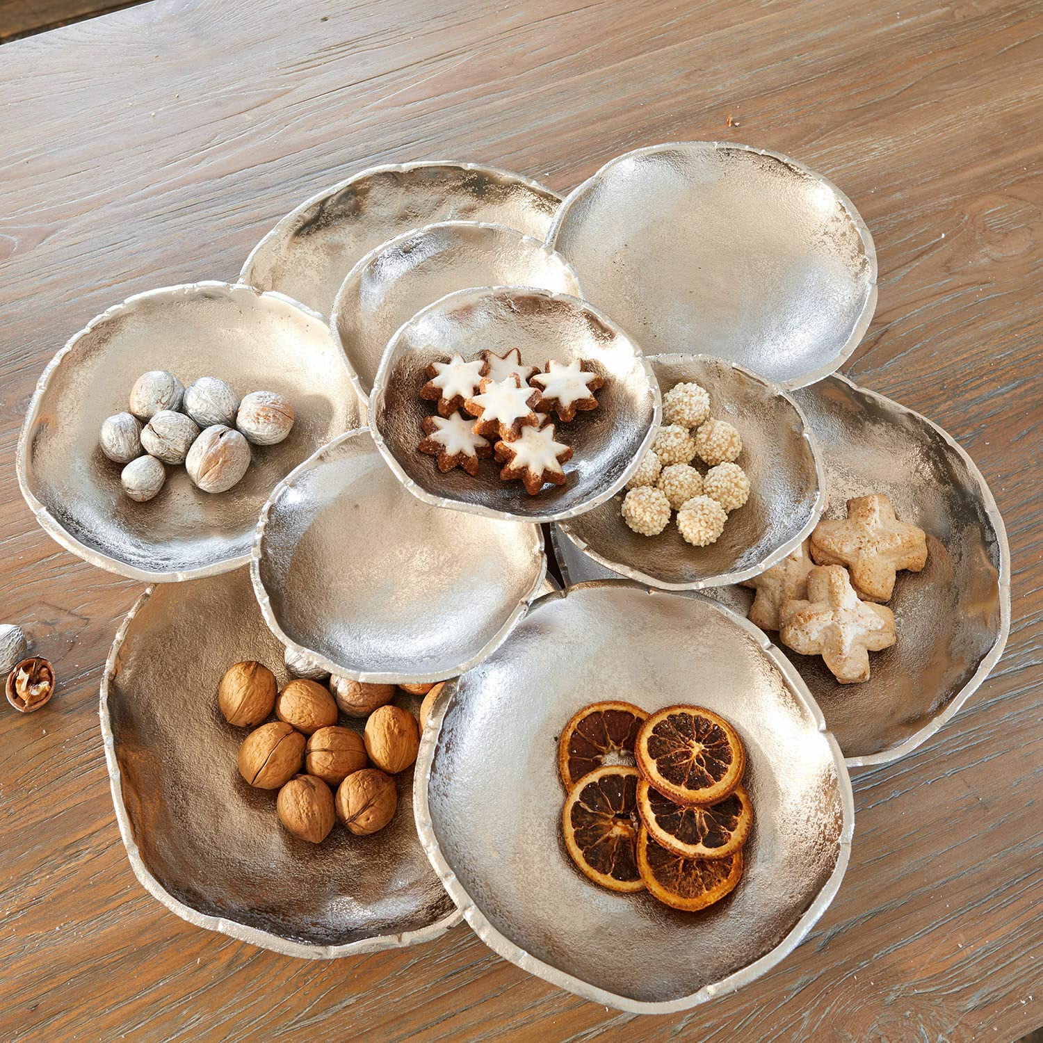 Ein Blickfang für jedes Zuhause! Die Loberon Schale Andris in warmem Antikgold besticht durch ihre besondere Oberflächenstruktur und orientalische Anmutung. Aus massivem Aluminiumguss gefertigt, vereint sie sechs fest miteinander verbundene Schälchen zu einem einzigartigen Kunstwerk. Perfekt als Deko-Objekt für Sideboard, Konsolen oder als stilvolles Accessoir für besondere Anlässe. Die typische Oberflächenstruktur verleiht ihr einen haptischen Reiz, während das antikgoldene Finish für edlen Glanz sorgt. Ein nachhaltiges Produkt, das durch Langlebigkeit überzeugt und deinem Interior das gewisse Etwas verleiht!