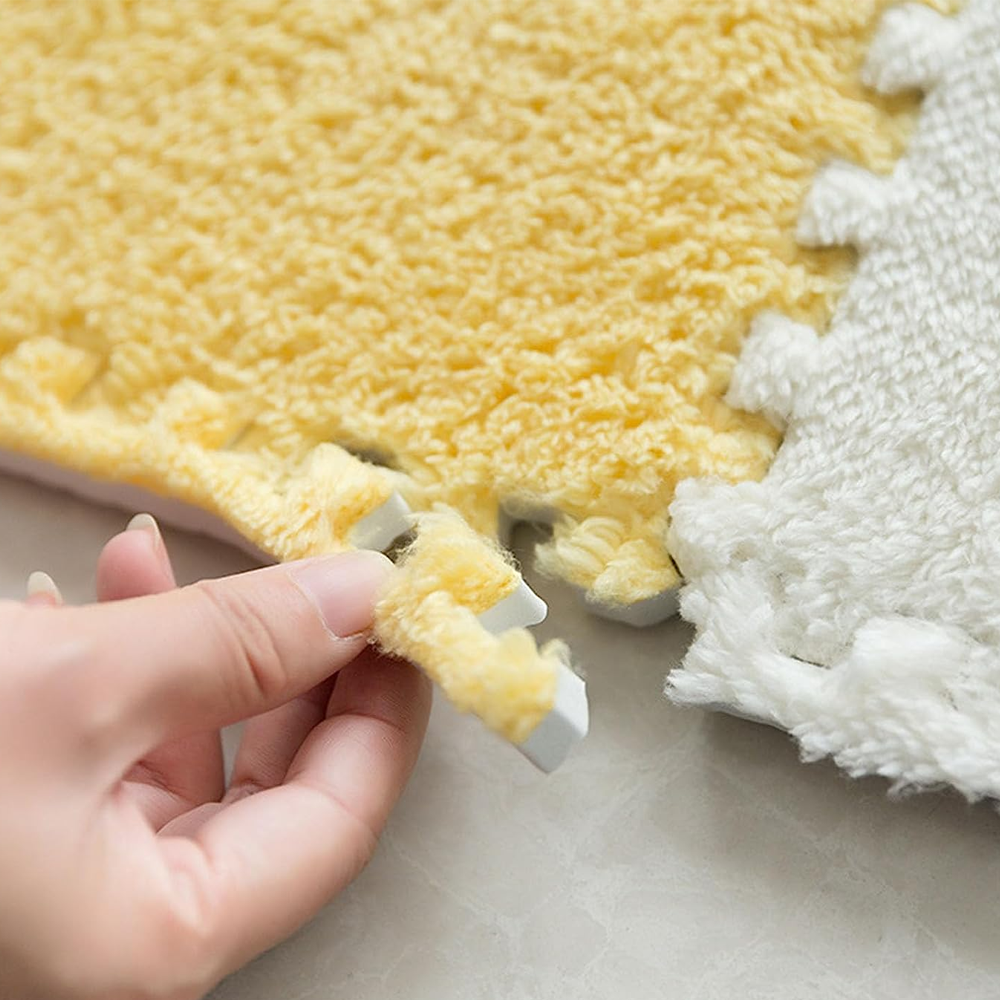 Mach deine Wohnung gemütlich mit diesen flauschigen Puzzleteppichen! Das Set enthält 10 Matten in Grau und Gelb, jeweils 30x30cm groß. Aus weichem Baumwollfleece und EVA-Schaumstoff - super bequem und hautfreundlich. Das Puzzle-Design ermöglicht einfaches Zusammenstecken ohne Kleber oder Werkzeug. Die rutschfeste Unterseite hält sicher auf jedem Boden. Perfekt fürs Kinderzimmer, Schlafzimmer, Wohnzimmer oder als Spielteppich. Einfach zu reinigen - mit feuchtem Tuch oder Staubsauger. Die 0,6-1cm Dicke bietet angenehmen Komfort und schützt deine Böden. Ideal auch für Yoga, Sport oder als gemütliche Ecke für deine Haustiere. Gestalte deinen Raum individuell und gemütlich!