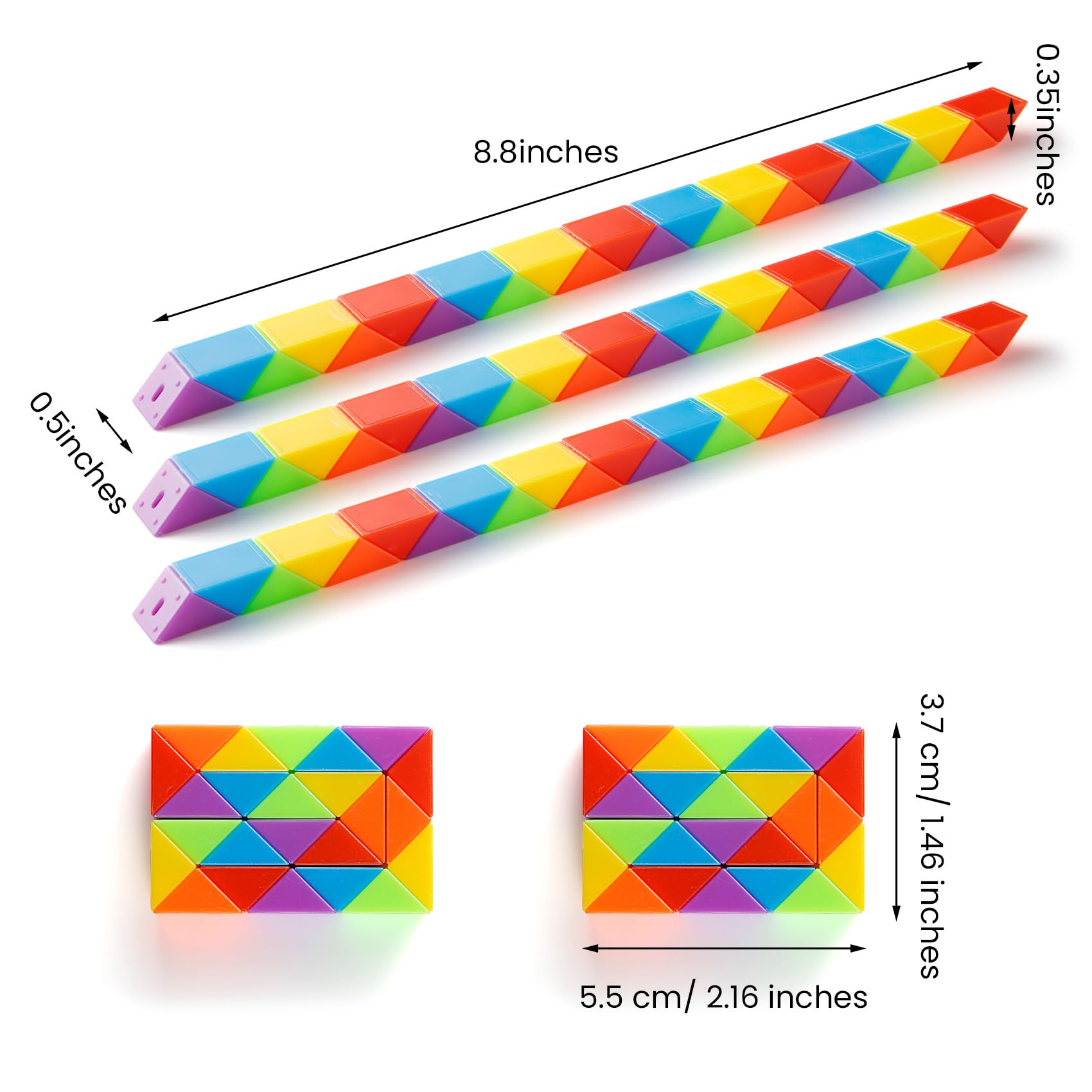 Total faszinierend - diese Magic Snake lässt sich in unendlich viele Formen verwandeln! Mit 24 drehbaren Keilen und in bunten Regenbogenfarben ist dieses Fidget-Spielzeug ein echter Hingucker. Aus hochwertigem ABS-Kunststoff - ungiftig, geruchsneutral und mit abgerundeten Ecken. Dreh die Schlange zu einem Ball, Hund, Rechteck oder was dir sonst noch einfällt! Perfekt gegen Langeweile, für unterwegs oder einfach zum Abschalten. Großartig für Kinder, Teenager und Erwachsene - trainiert die Fantasie und motorischen Fähigkeiten. Ideal als Geschenk, für Goodie-Bags oder als kleine Aufmerksamkeit. Einfach drehen, formen und staunen - dieses Spielzeug macht süchtig!