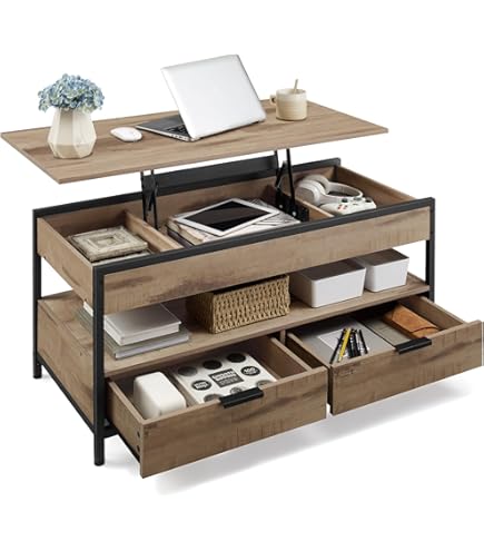 Wow, dieser DRIXNO Satztisch ist ja mal richtig clever designt! Das 2-teilige Set besteht aus einem großen und einem kleinen Tisch, die du entweder zusammen oder einzeln verwenden kannst. Der große Tisch ist sogar höhenverstellbar - von 42cm bis 56,5cm - perfekt als Couchtisch, aber auch als Esstisch oder Arbeitstisch nutzbar.\n\nWas ich besonders praktisch finde: Der große Tisch hat ein Fach unter der Platte und der kleine Tisch zwei Schubladen! Endlich genug Stauraum für Fernbedienungen, Zeitschriften, Snacks oder was auch immer auf dem Couchtisch rumliegt. So bleibt dein Wohnzimmer immer ordentlich.\n\nDie Kombination aus weiß und Eicheoptik mit den goldenen Füßen sieht mega modern und stylisch aus. Das MDF-Material ist robust und langlebig, hält also auch bei täglicher Nutzung was aus. Die dreiteiligen Schienen an den Schubladen sorgen für einen smoothen Lauf - kein Haken oder Klemmen.\n\nDurch das ineinander verschachtelbare Design sparst du Platz, wenn du die Tische mal nicht brauchst. Und als Set machen sie einfach mehr her als einzelne Tische. Ob im Wohnzimmer, Schlafzimmer oder sogar im Home-Office - diese Tische sind echte Allrounder.\n\nDeine Gäste werden sicher neidisch sein auf dieses stylische und gleichzeitig super praktische Möbelstück. Einfach aufbauen und sofort dein Zuhause aufwerten!