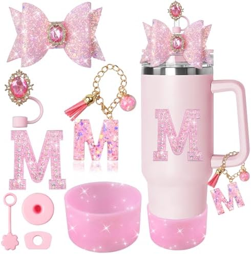Mach deinen Stanley Cup einzigartig! Dieses 7-teilige Deko-Set verwandelt deinen langweiligen Tumbler in ein absolutes Unikat. Enthalten sind süße Initialen-Anhänger, bezaubernde Strohhalm-Schleifen, praktische Strohhalm-Abdeckungen, stabile Boden-Schoner, auslaufsichere Verschlüsse und persönliche Aufkleber. Perfekt für 30oz und 40oz Becher mit Henkel - einfach anbringen und schon glänzt dein Drink-Becher wie nie zuvor! Ob für dich selbst oder als Geschenk für beste Freundinnen - mit diesem Bling-Bling-Set wird jeder Tumbler zum Hingucker. Einfach zu montieren, wiederverwendbar und in verschiedenen Styles kombinierbar. Dein Stanley Cup war noch nie so individuell!