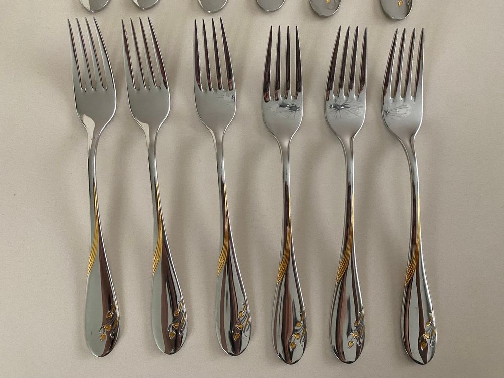 Bring weihnachtlichen Glanz an deinen Tisch! Dieses 6-teilige Set aus goldfarbenen Löffeln und Gabeln ist einfach hinreißend. Aus hochwertigem Edelstahl mit eleganter Hochglanzpolitur. Die 15,8cm langen Löffel sind perfekt für Kaffee, Tee oder Desserts. Die 16cm langen Gabeln mit drei Zinken ideal für kleine Häppchen, Kuchen oder Obst. Super vielseitig: Ob zum Aufhängen als Deko, für die Kaffeetafel oder zum Basteln - deiner Kreativität sind keine Grenzen gesetzt. Ein wunderschönes Geschenk für Weihnachten oder einfach so. Mit diesem Set wird jede Tafel zum festlichen Event. Praktisch verpackt und sofort einsatzbereit - weihnachtliche Eleganz pur!