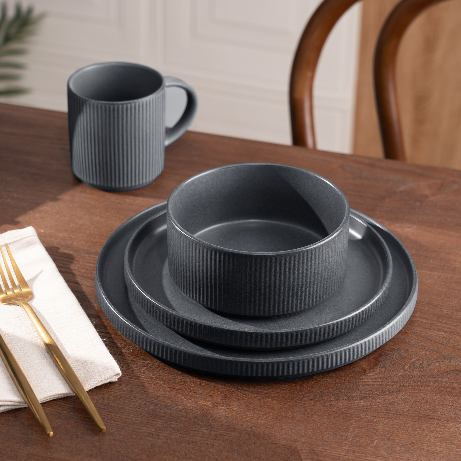 Wow, dieses 12-teilige Geschirrset von Homikit ist einfach traumhaft! Im schicken Khaki-Design mit Wasserwellen-Oberfläche macht es jeden Tisch zum Hingucker. Perfekt für 4 Personen!